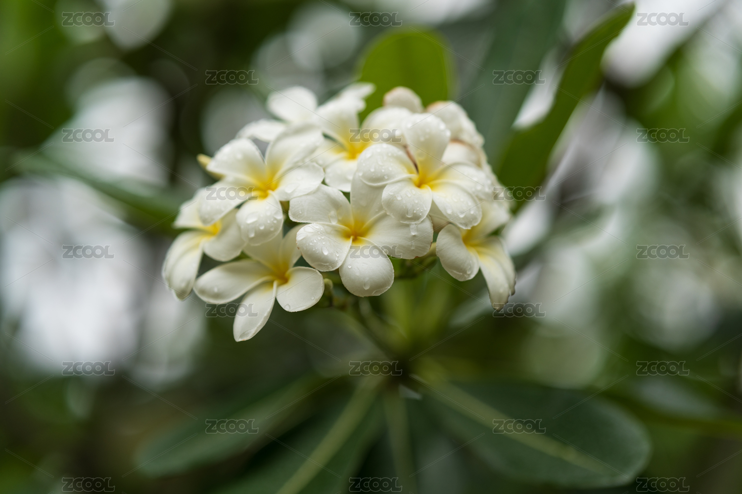 阳光下盛开的白色夹竹桃花簇花朵特写