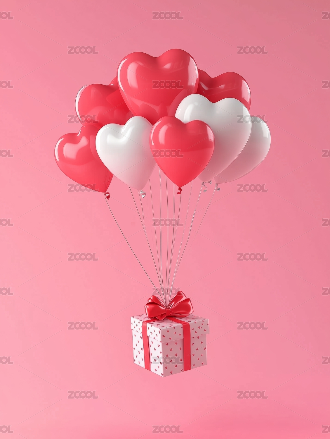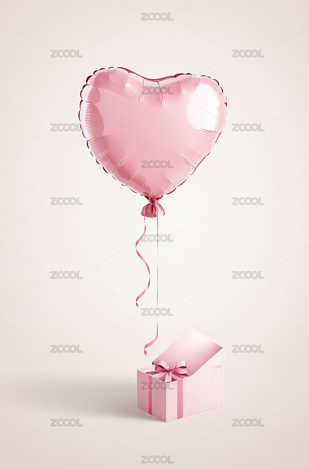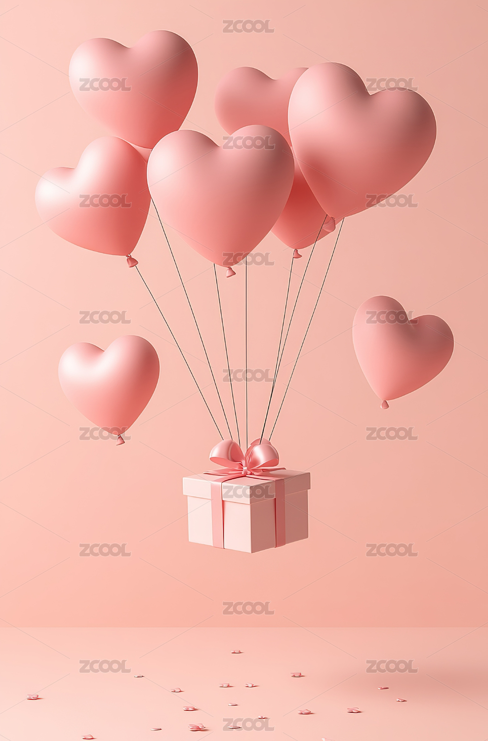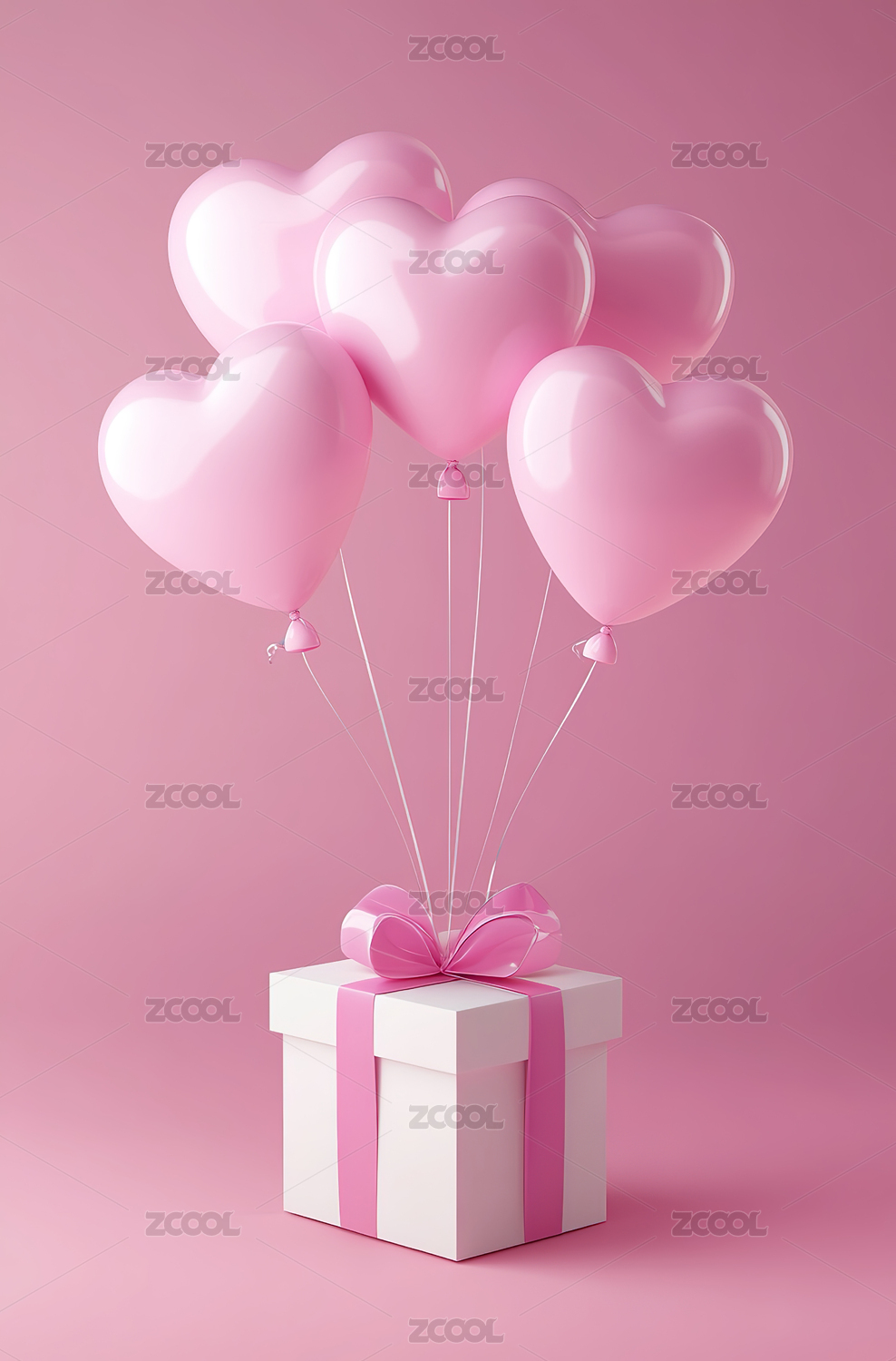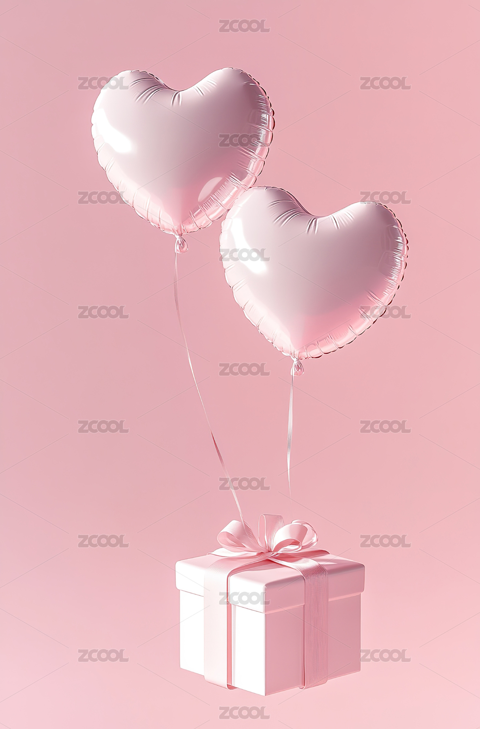粉色爱心气球与礼盒浪漫情人节