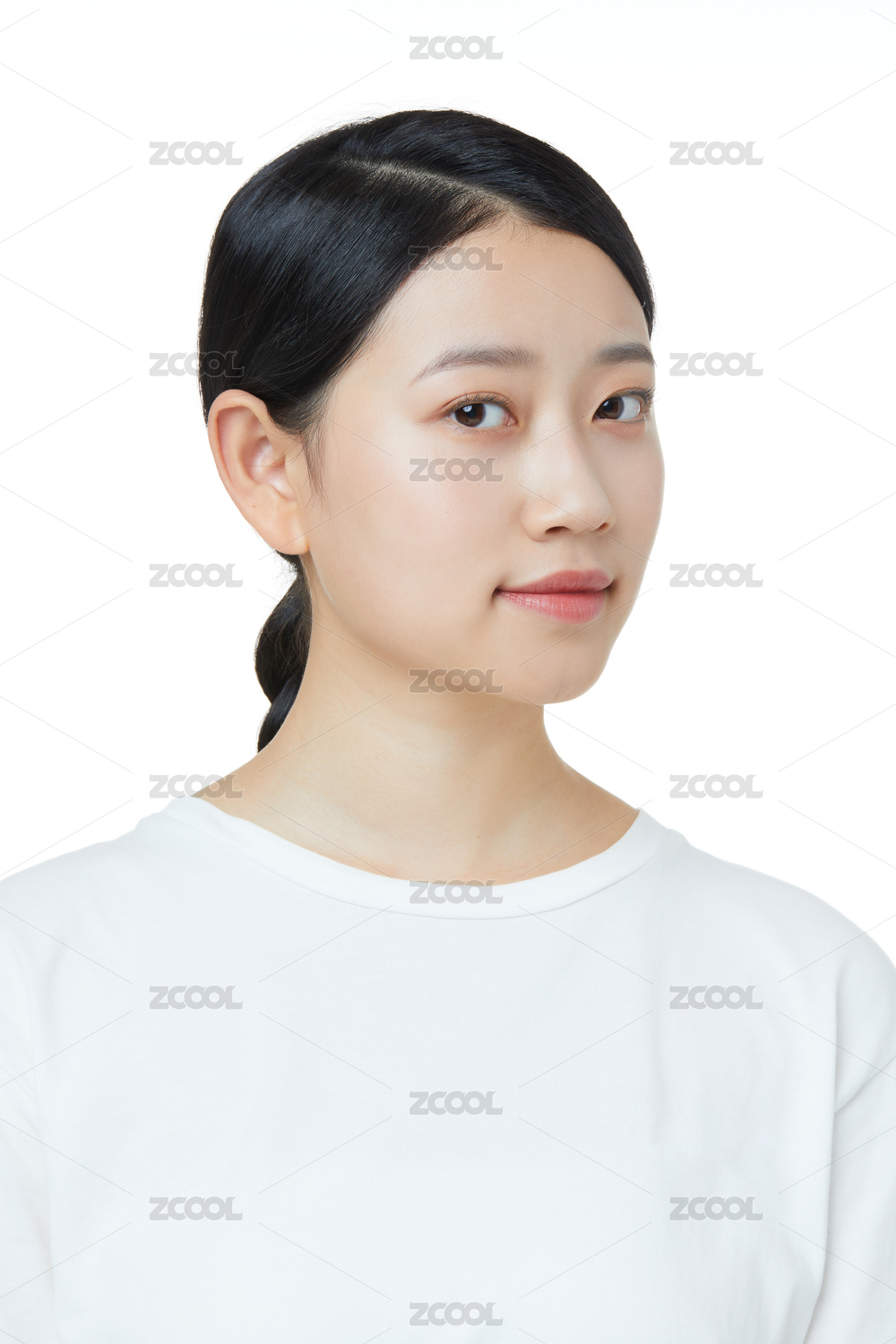 青年女性穿着白T恤半身形象
