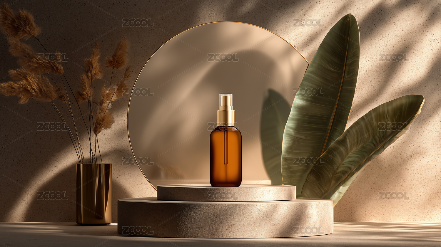 自然植物装饰的护肤品展示