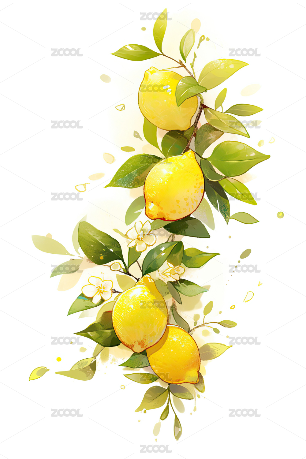 手绘柠檬枝与柠檬片