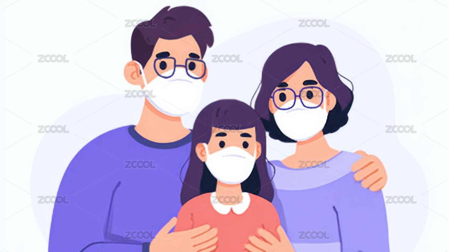 生病戴口罩的一家人-扁平插画