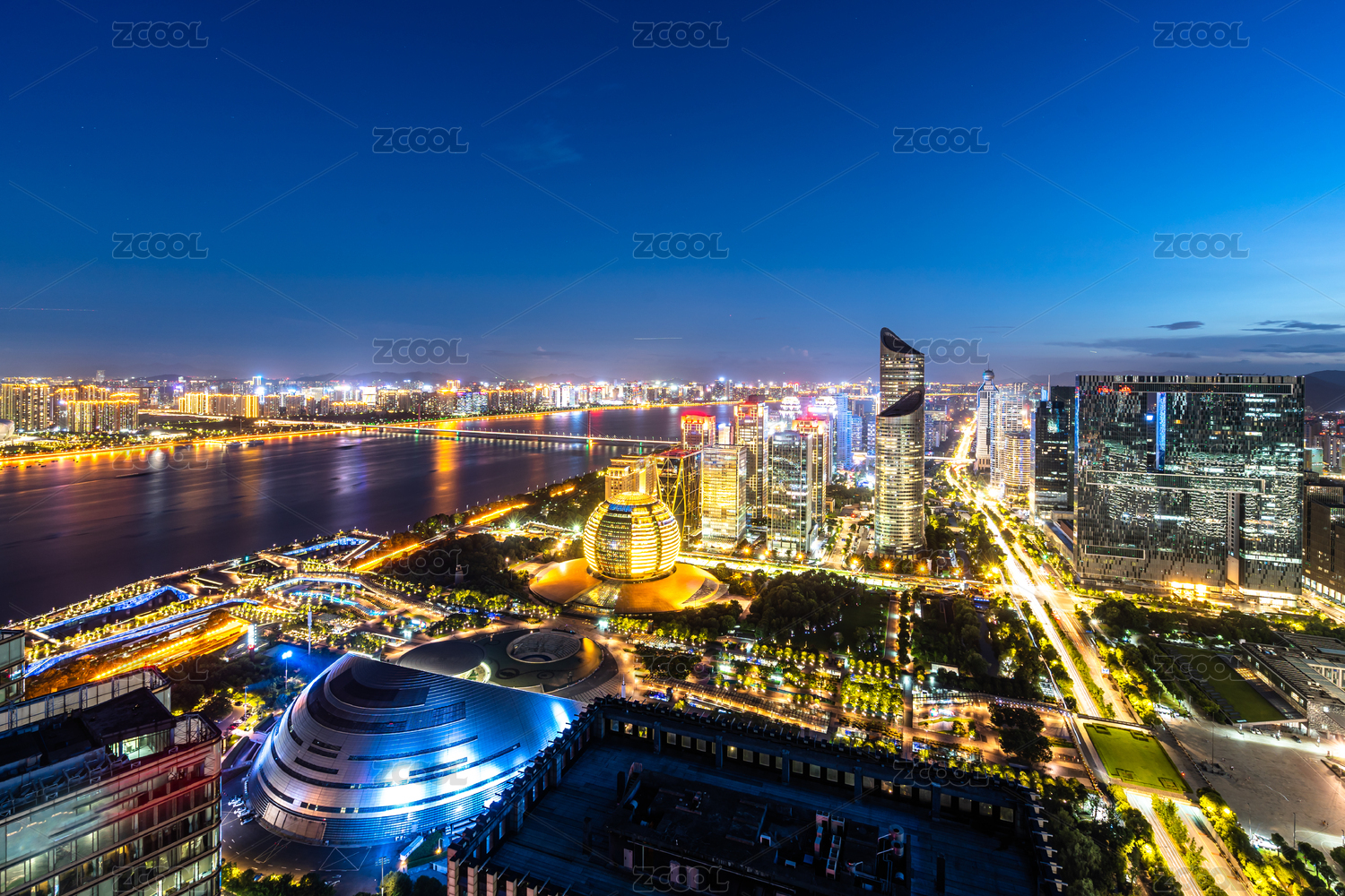 浙江省杭州市钱塘江和钱江新城夜景