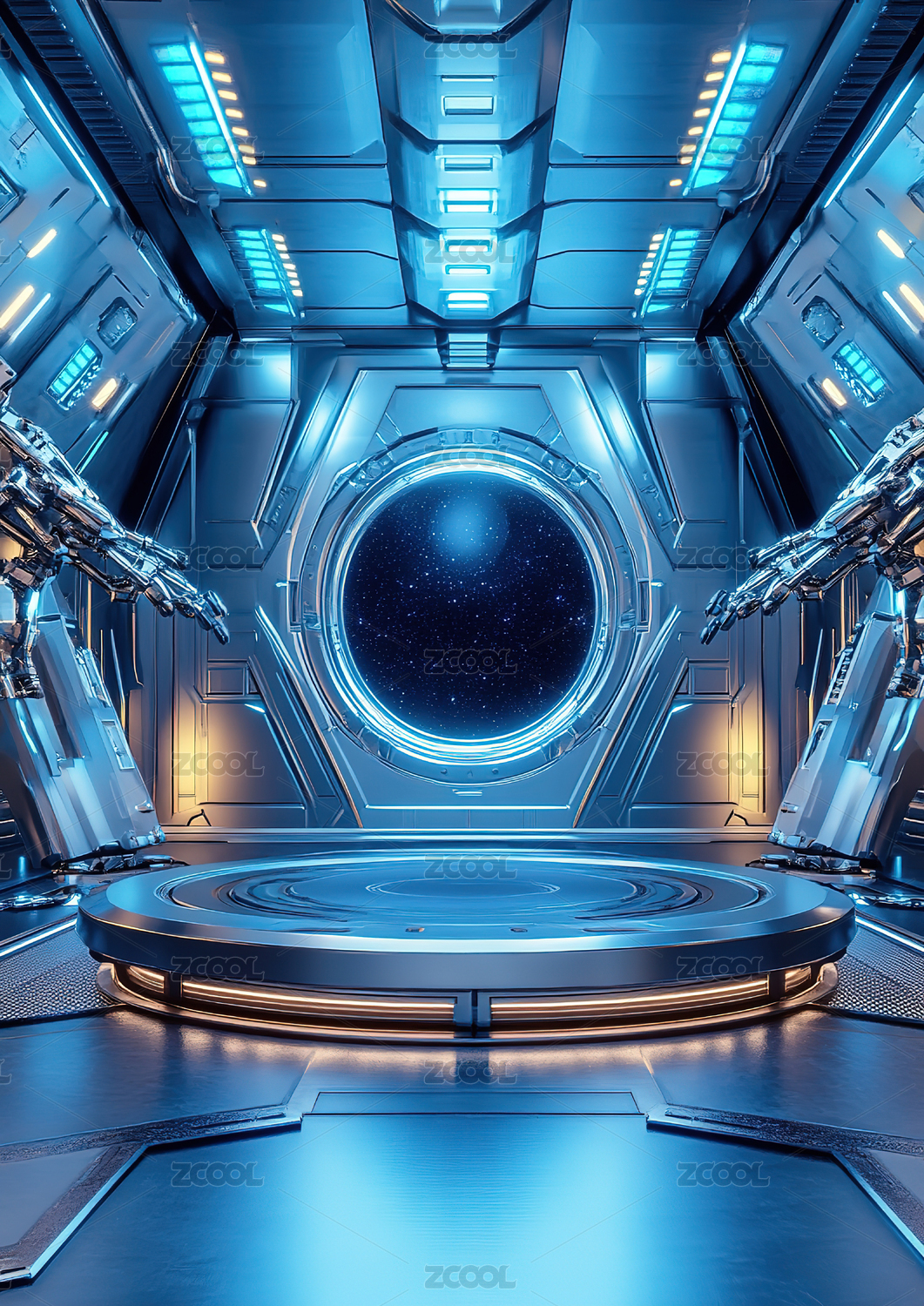 太空,科幻,产品展台,汽车广告背景图,AI数字艺术,未来,人造空间,舞台,插画,无人