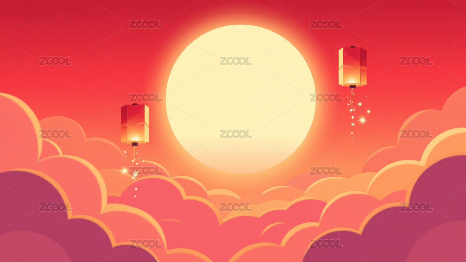 中秋节里赏月亮看花灯传统节日矢量插画背景