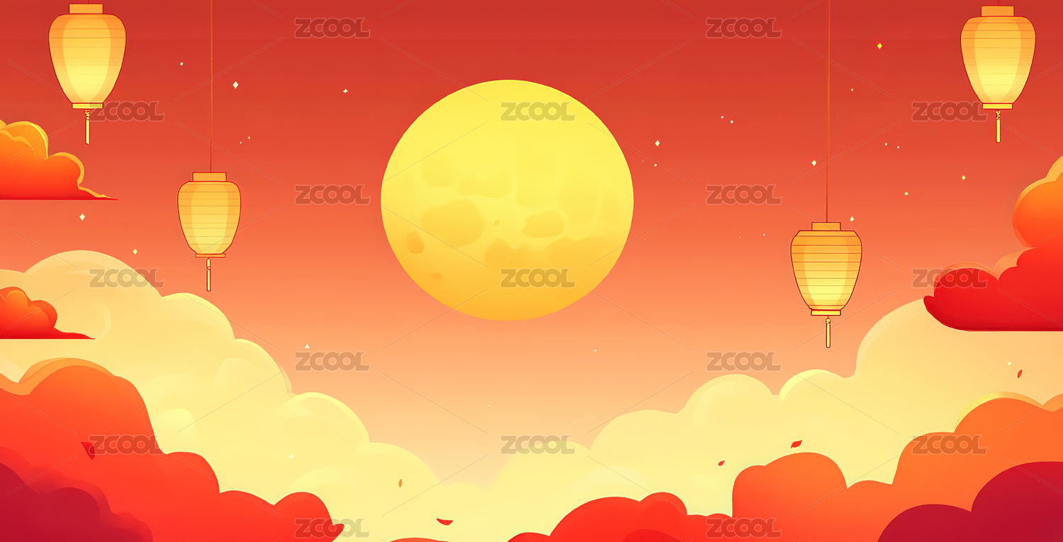 中秋节夜晚礼盒月亮兔子等宣传促销插画横版