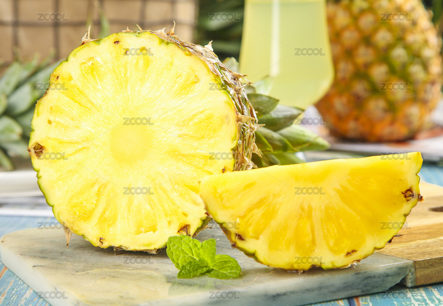 亮底上放着切开的凤梨