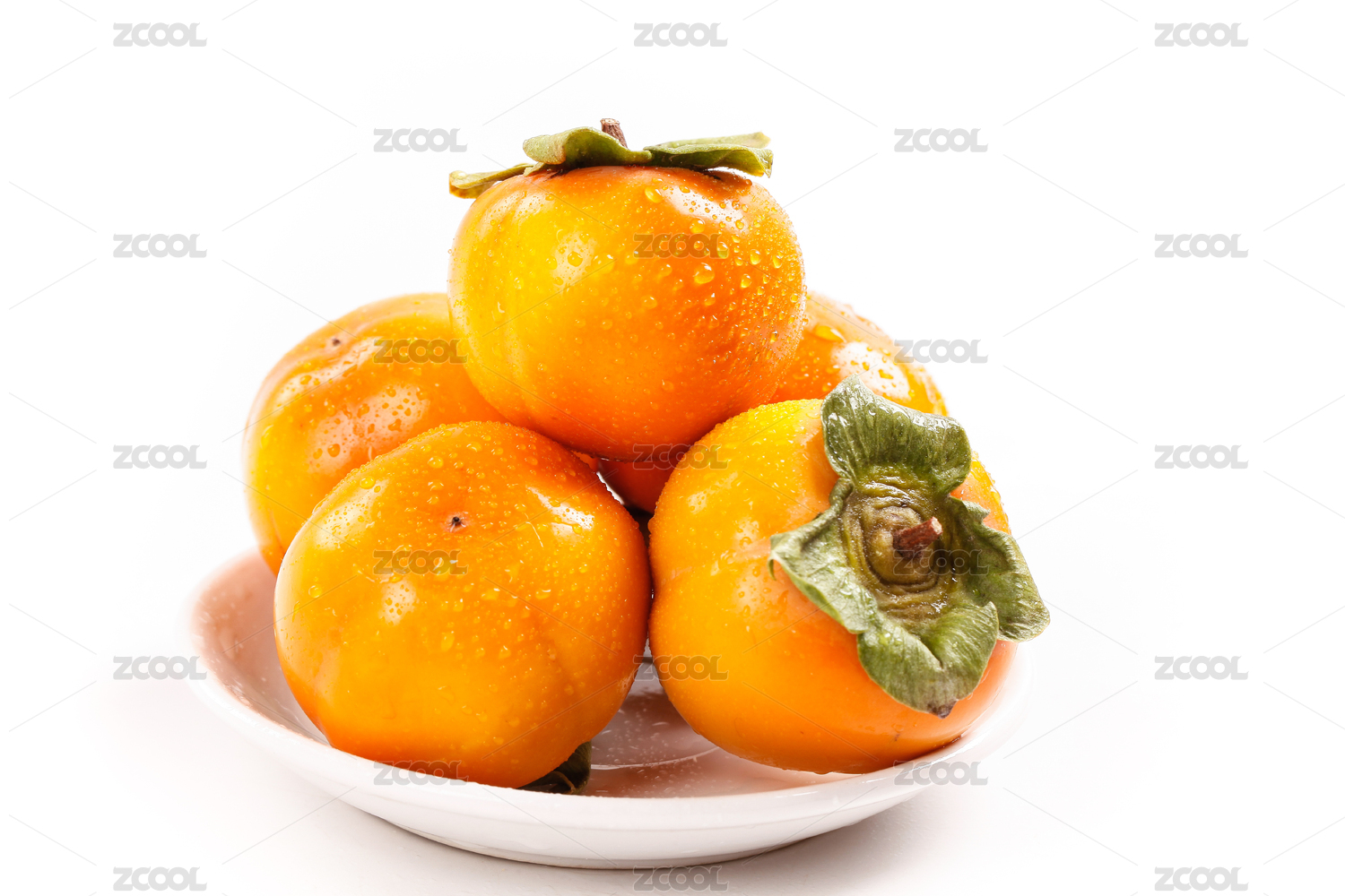 白底上放着脆甜柿子