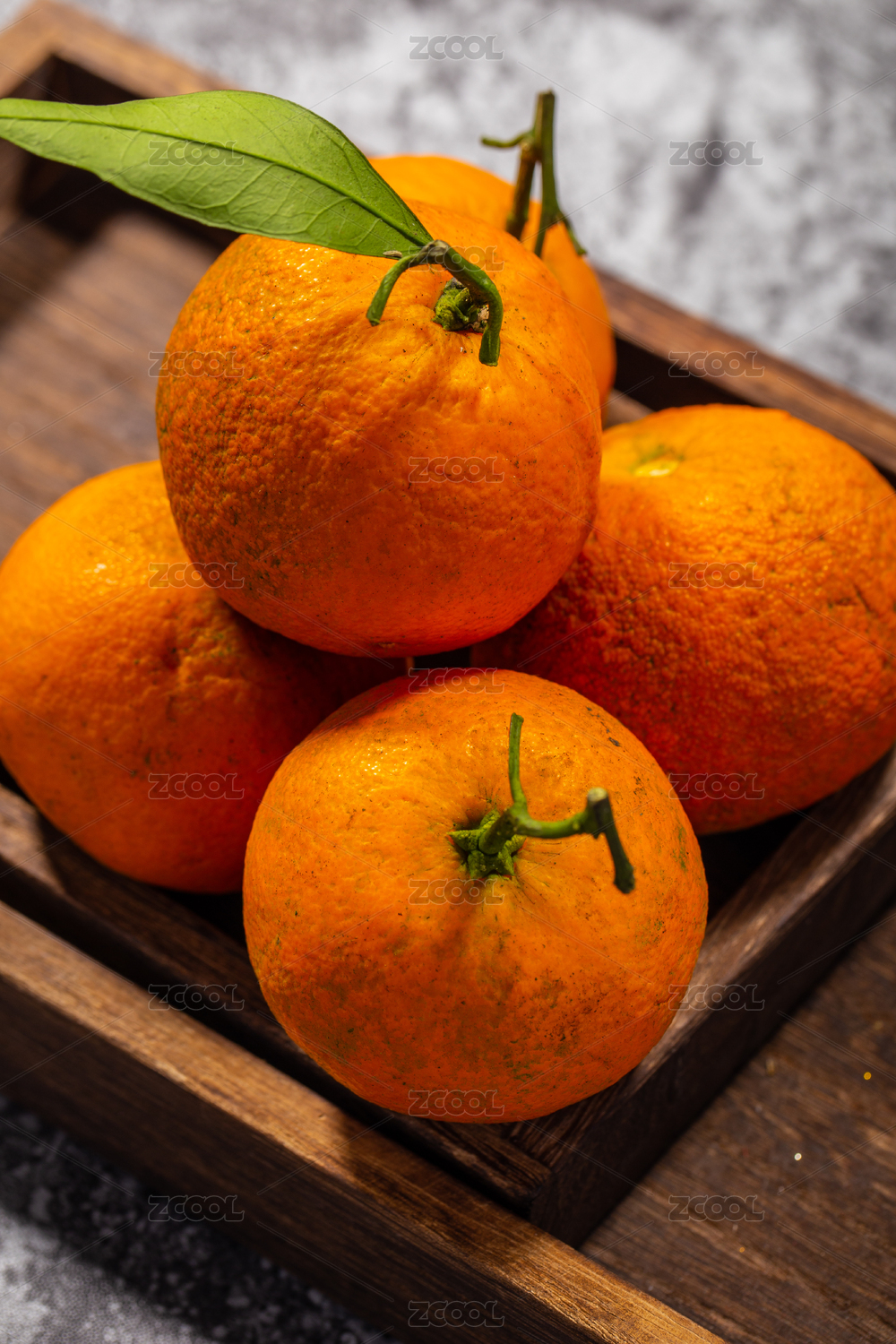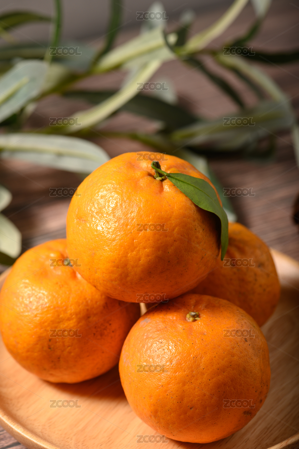 木桌面上的砂糖桔