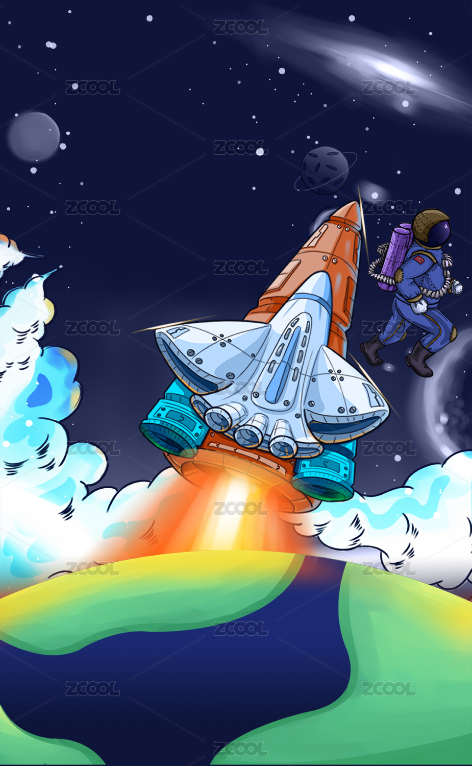 手绘卡通宇宙太空宇航员星球插画矢量素材