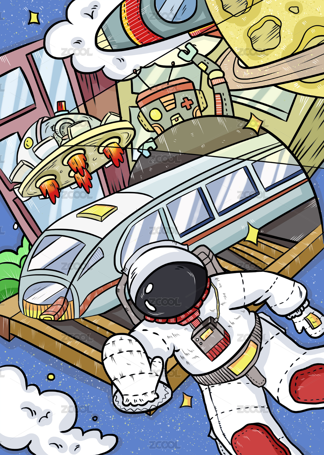 手绘卡通太空人插画