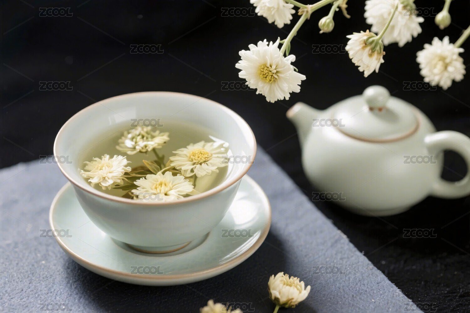 陶瓷杯子里面的杭白菊花茶