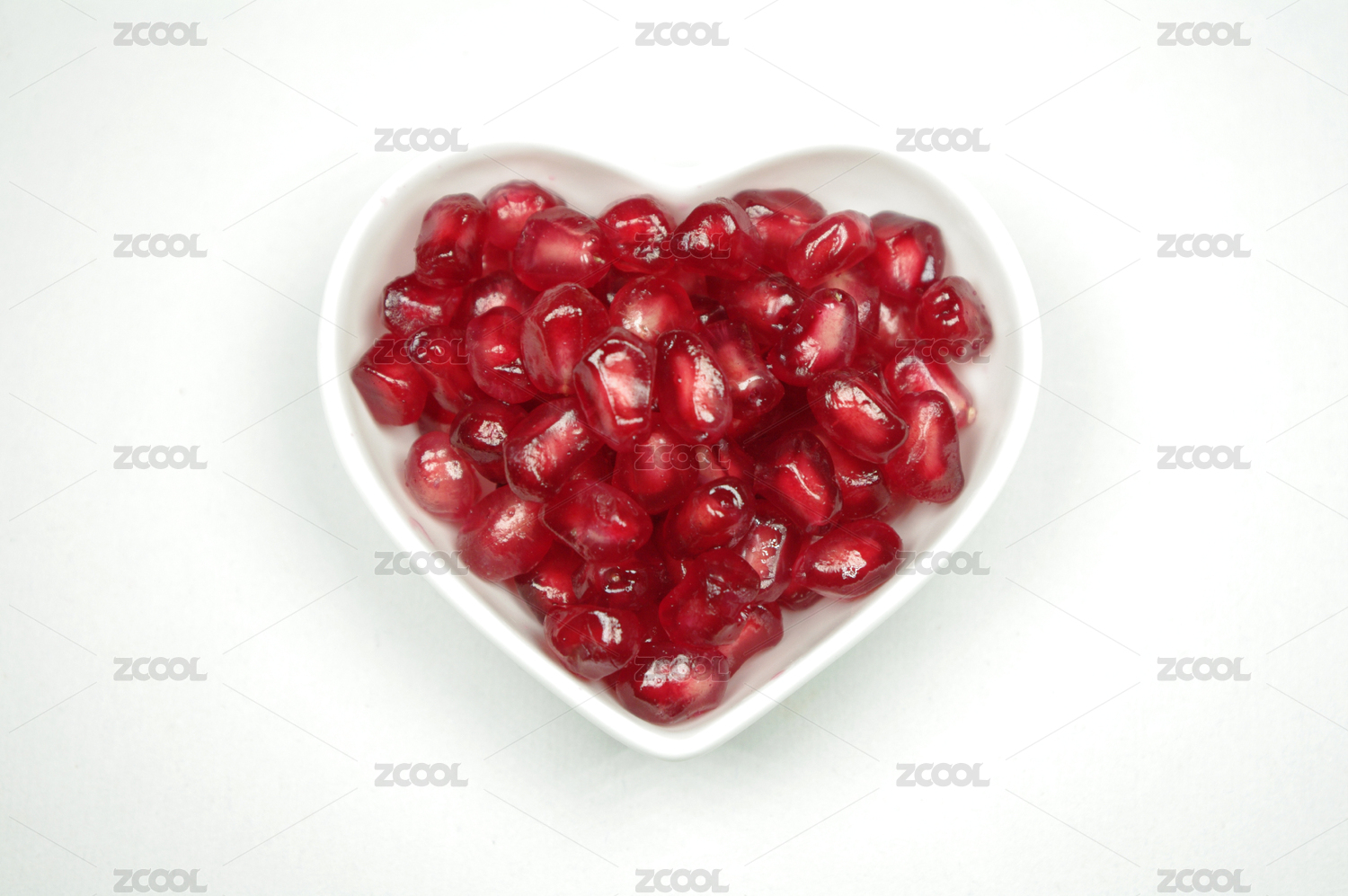 白底上甜石榴果粒摆成的爱心