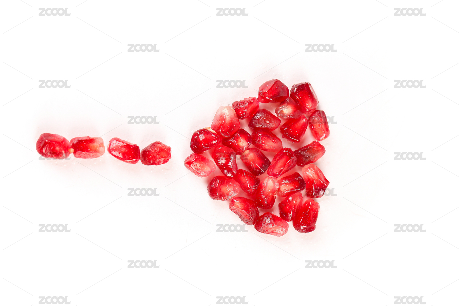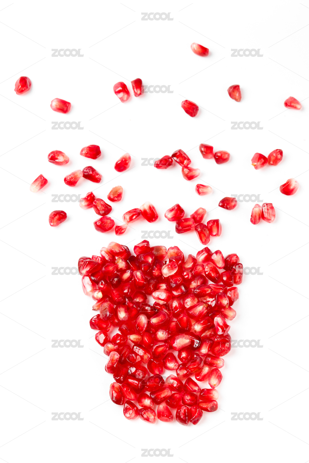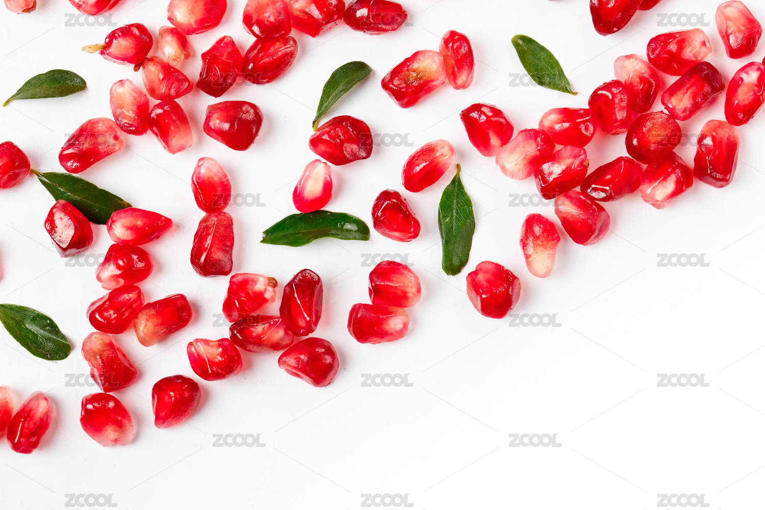 白底上俯拍的新鲜石榴果粒素材