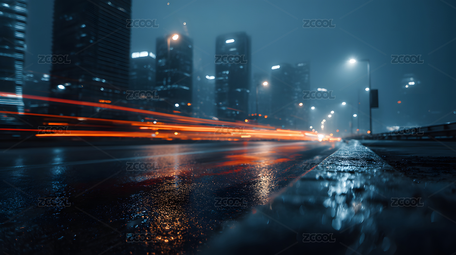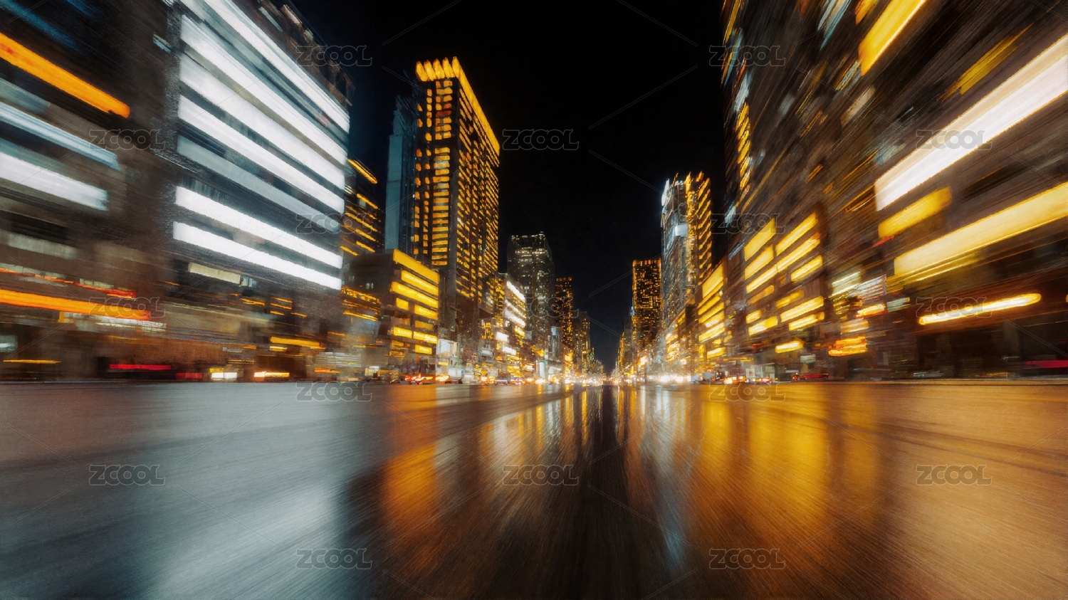 赛博朋克科技城市街景与疾速行驶的汽车夜景