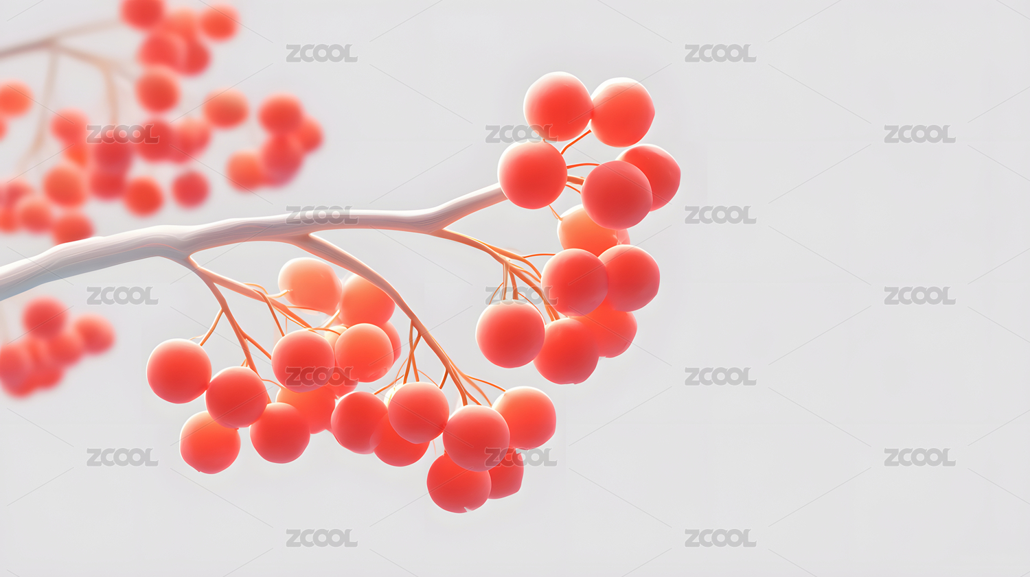 橙色浆果枝条的简洁背景