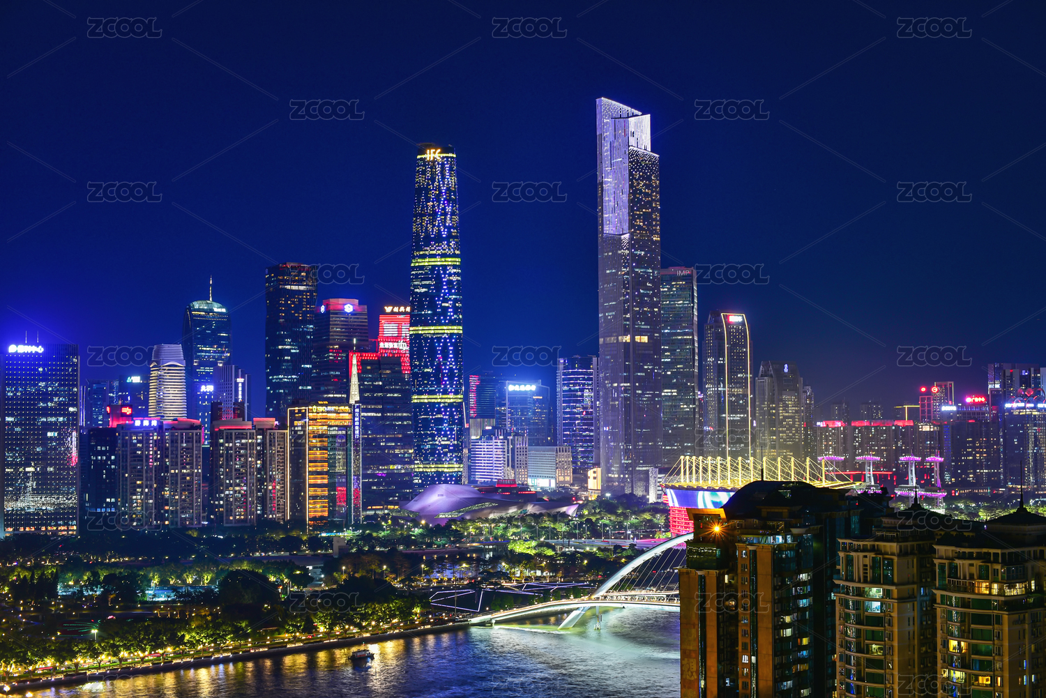 广州,城市天际线,桥梁,霓虹灯,中央商务区,CBD,经济,发展,现代,贸易