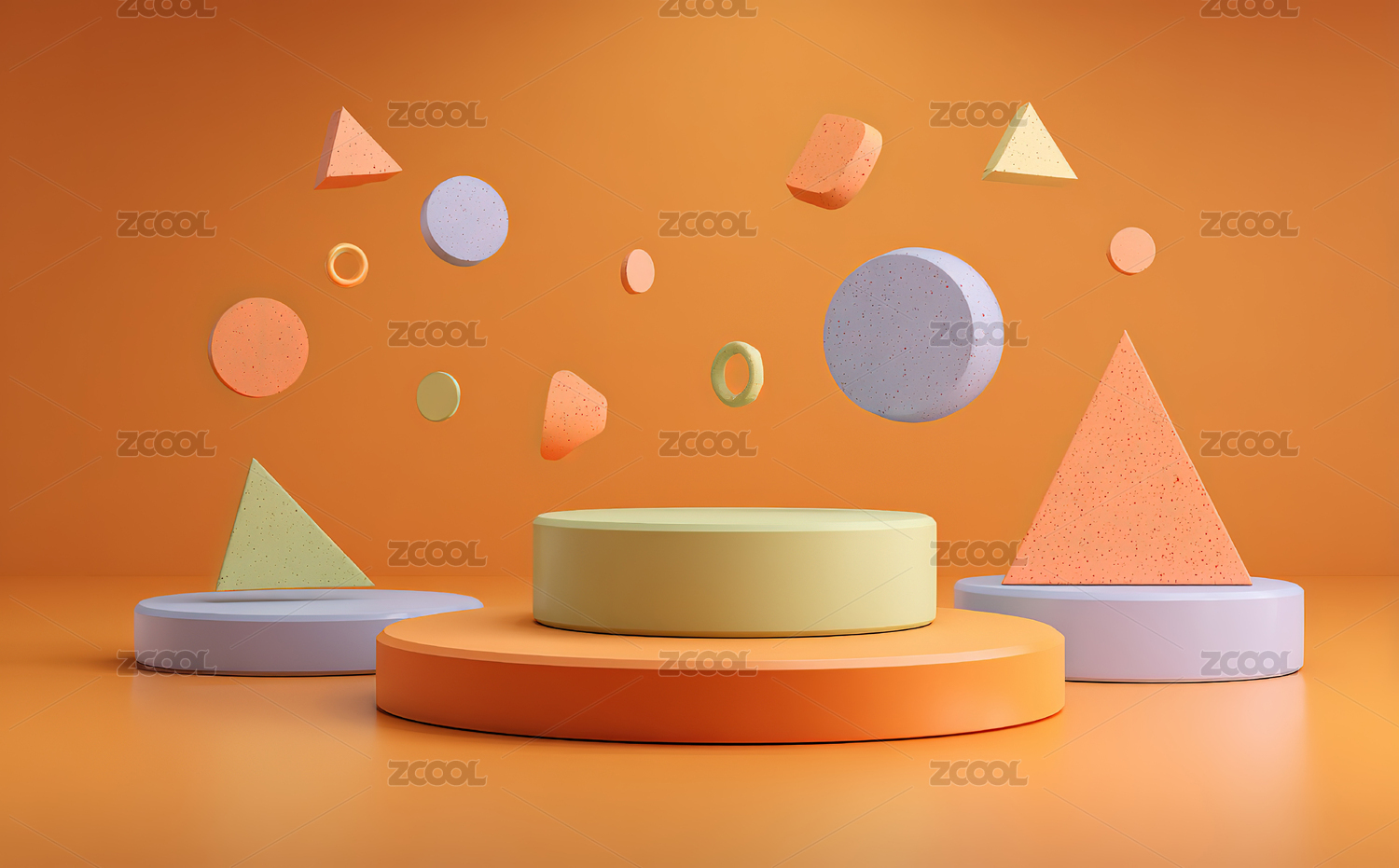 3D,插画,产品,几何体,台阶,圆柱体,复古,展示,平台,底座