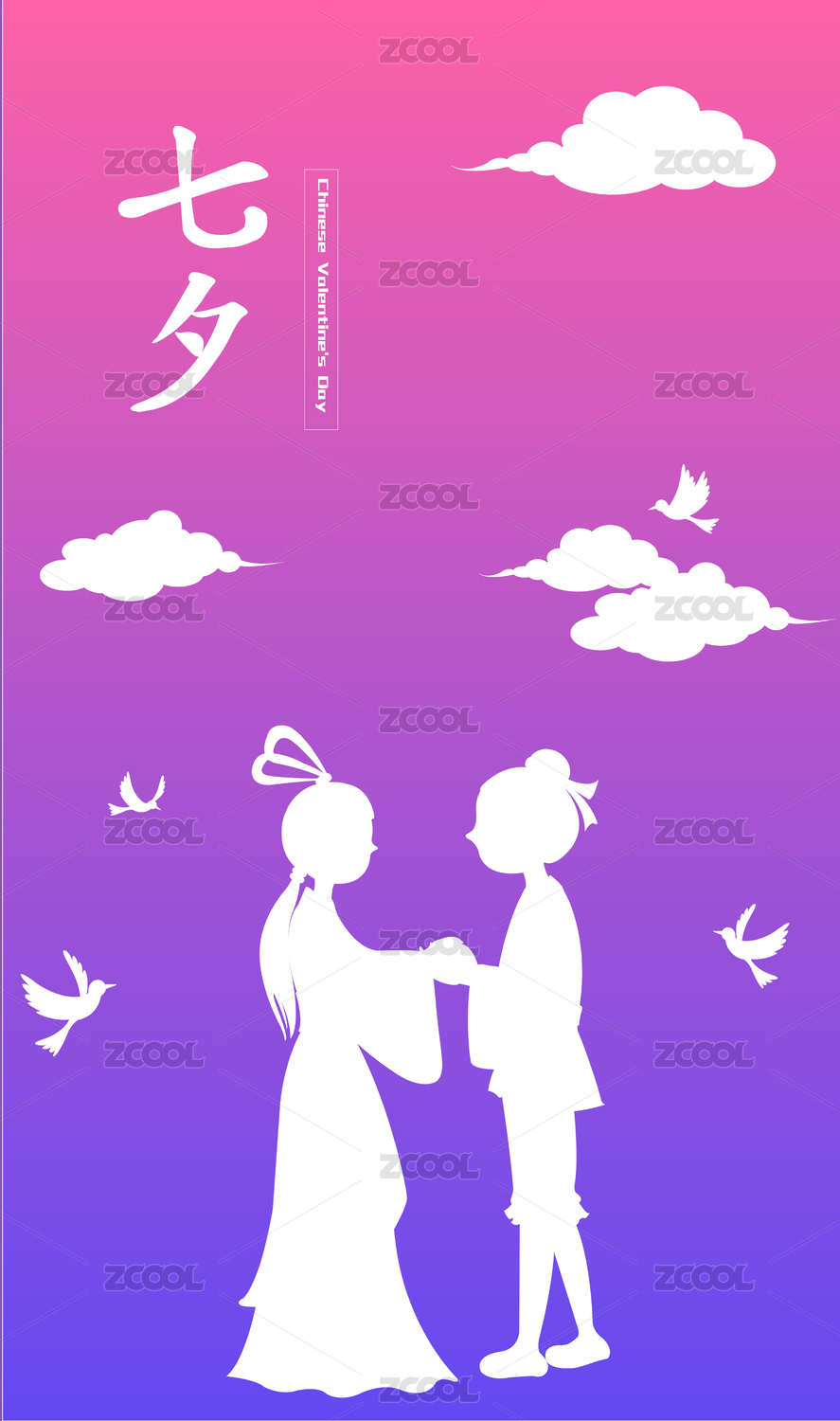 七夕情人节牛郎织女鹊桥相会手绘插画海报