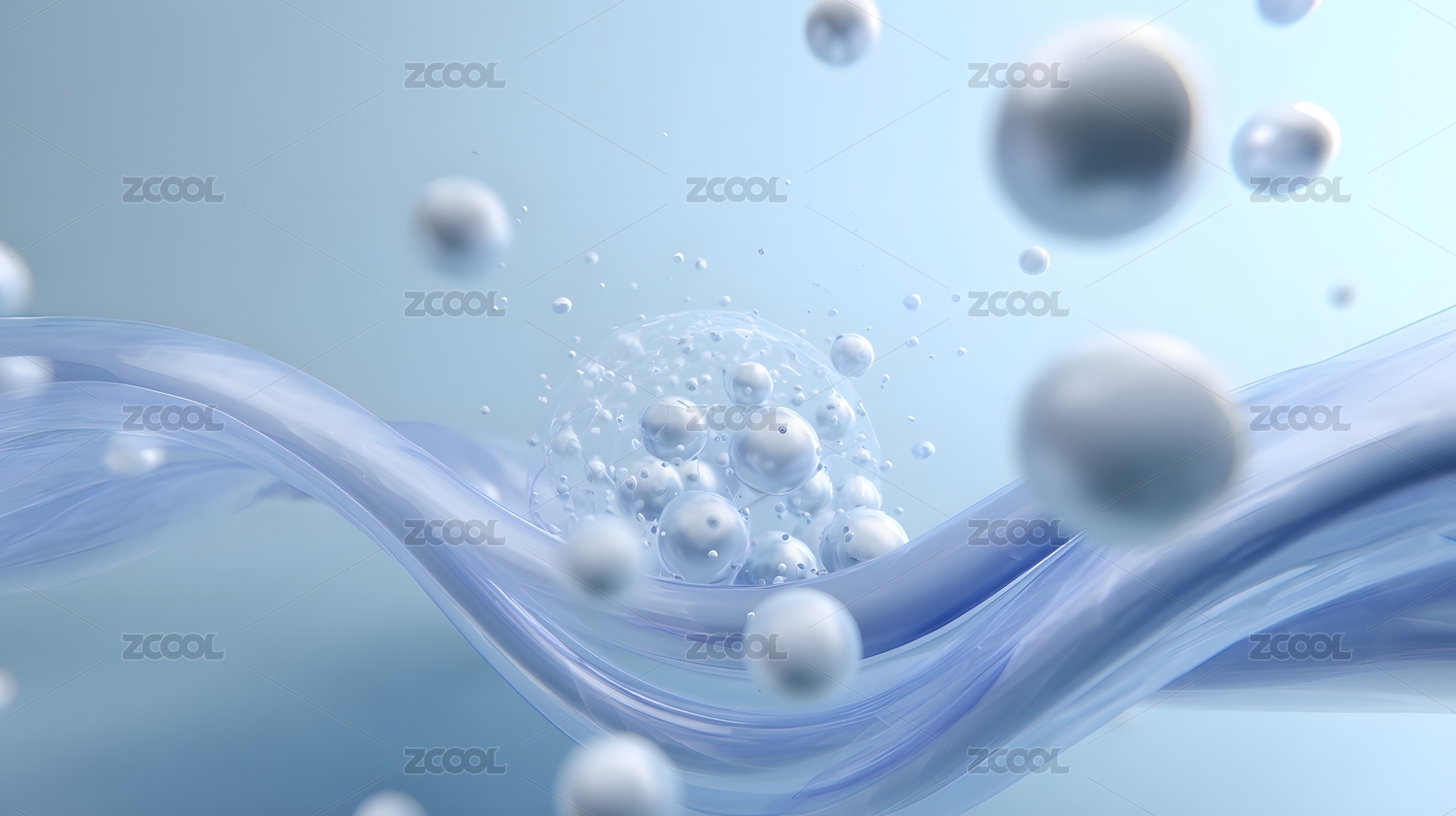 蓝色水面3D水泡背景