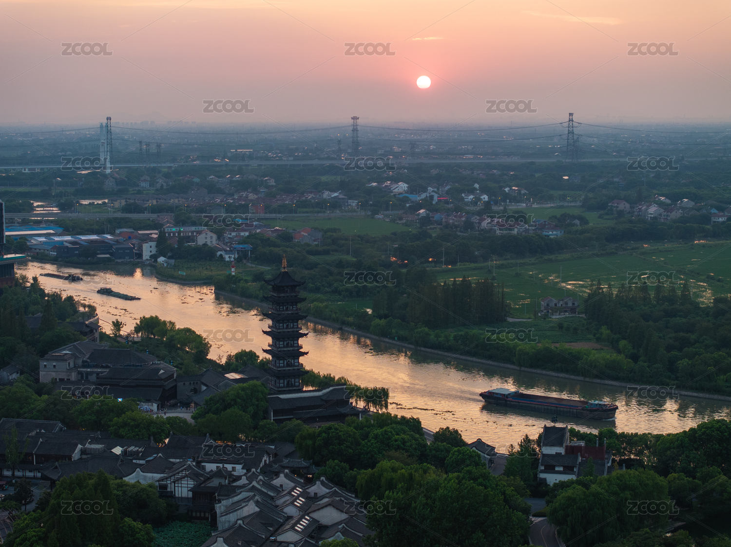 乌镇,白莲塔,古塔,古建筑,日出,江南运河,西栅景区