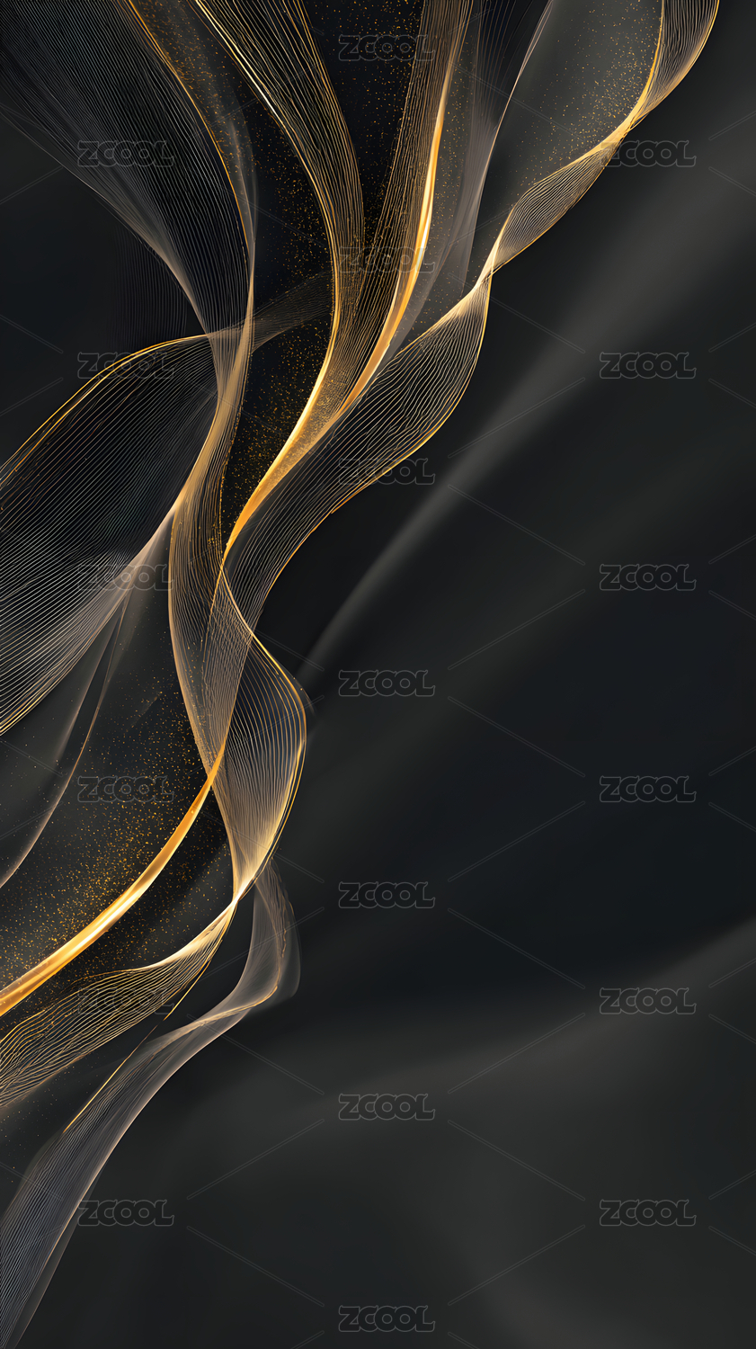 数码烟熏流动蓝金曲线抽象图形海报背景