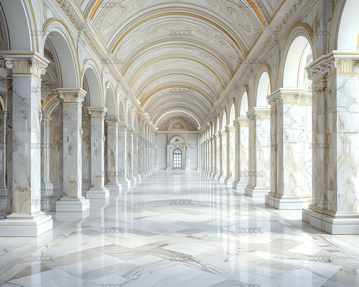 金白廊柱奢华建筑场景