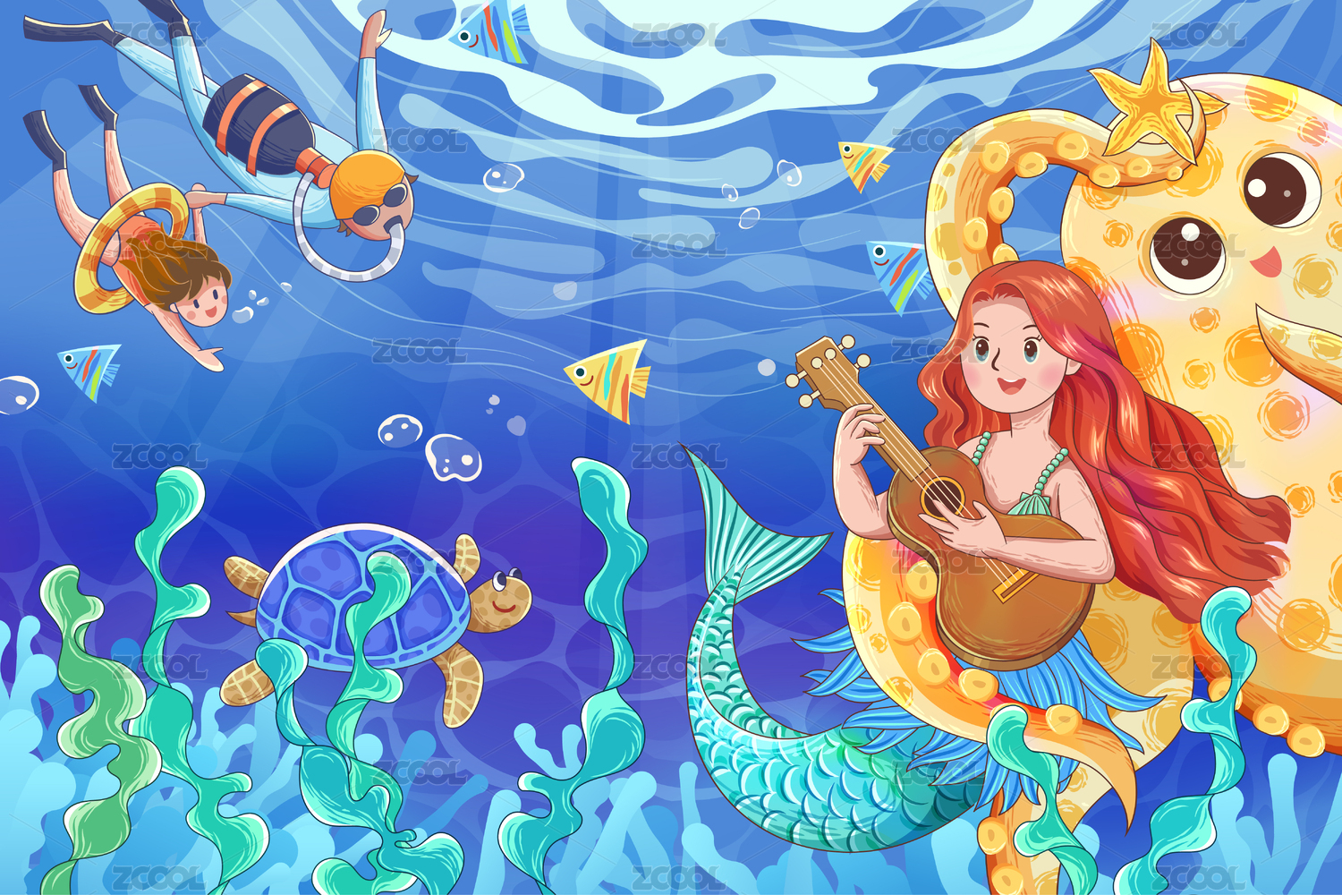 儿童,插画,海底,马戏团,表演,节目,卡通,人物,海洋,海洋生物