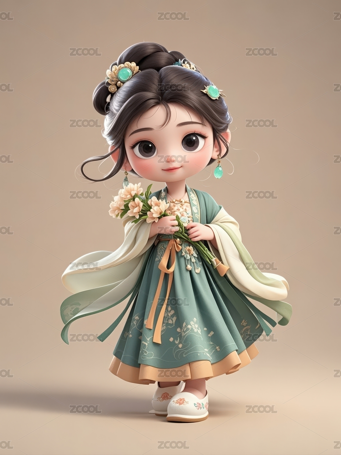 女人,女孩,女性,古装,古代,汉服,美丽,插画,3D,特写