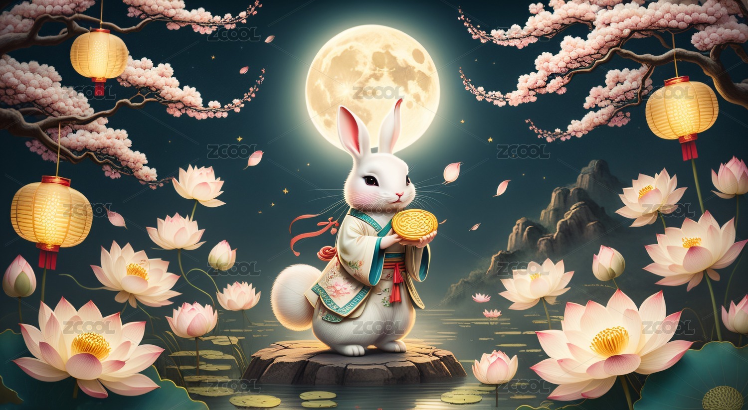 兔子玉兔月亮灯笼花可爱月饼3D立体风格