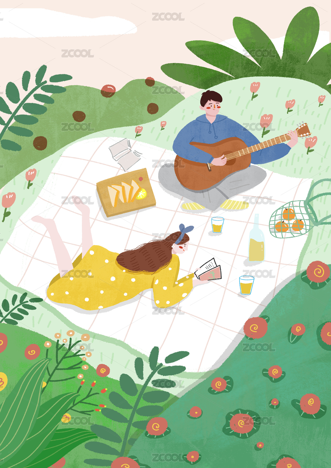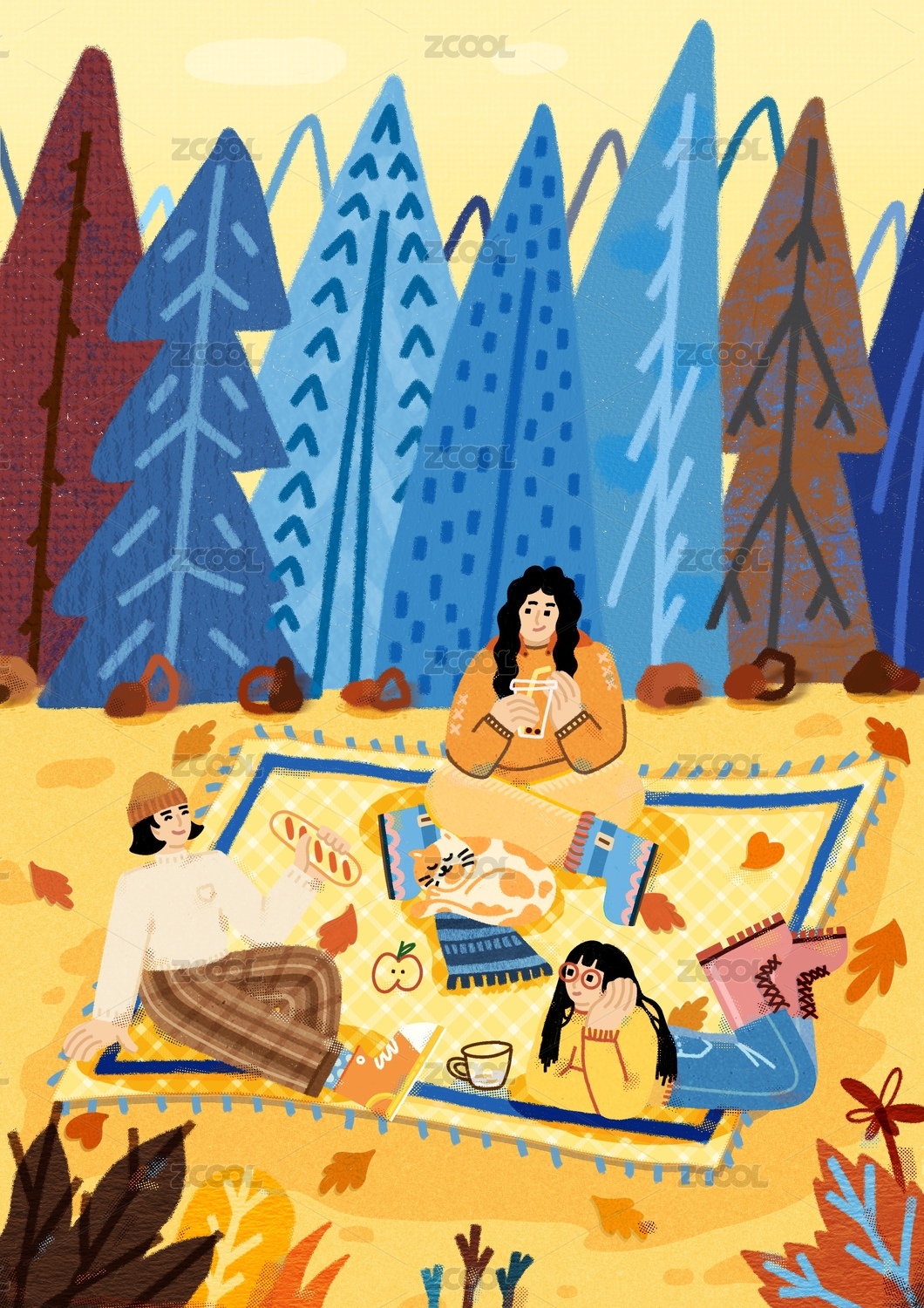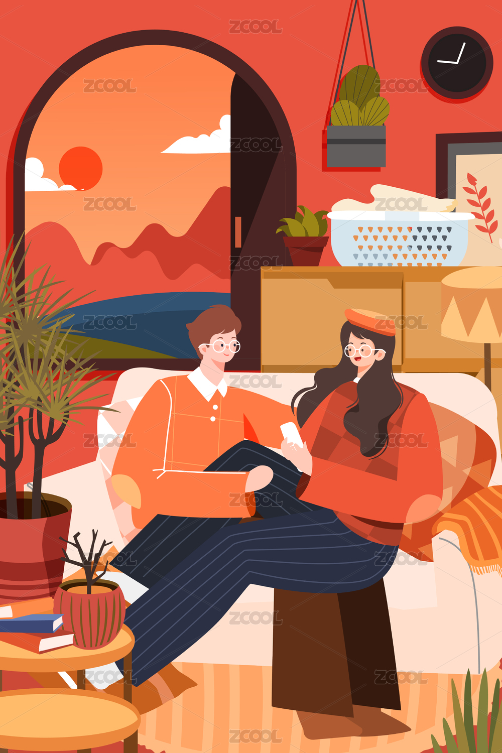 创意,插画,时尚,阳光,朋友,女孩,闺蜜,户外,建筑,房子