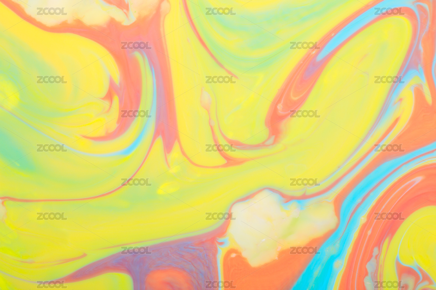 流动的丙烯颜料背景,抽象纹理。 不同的鲜艳颜色混合。