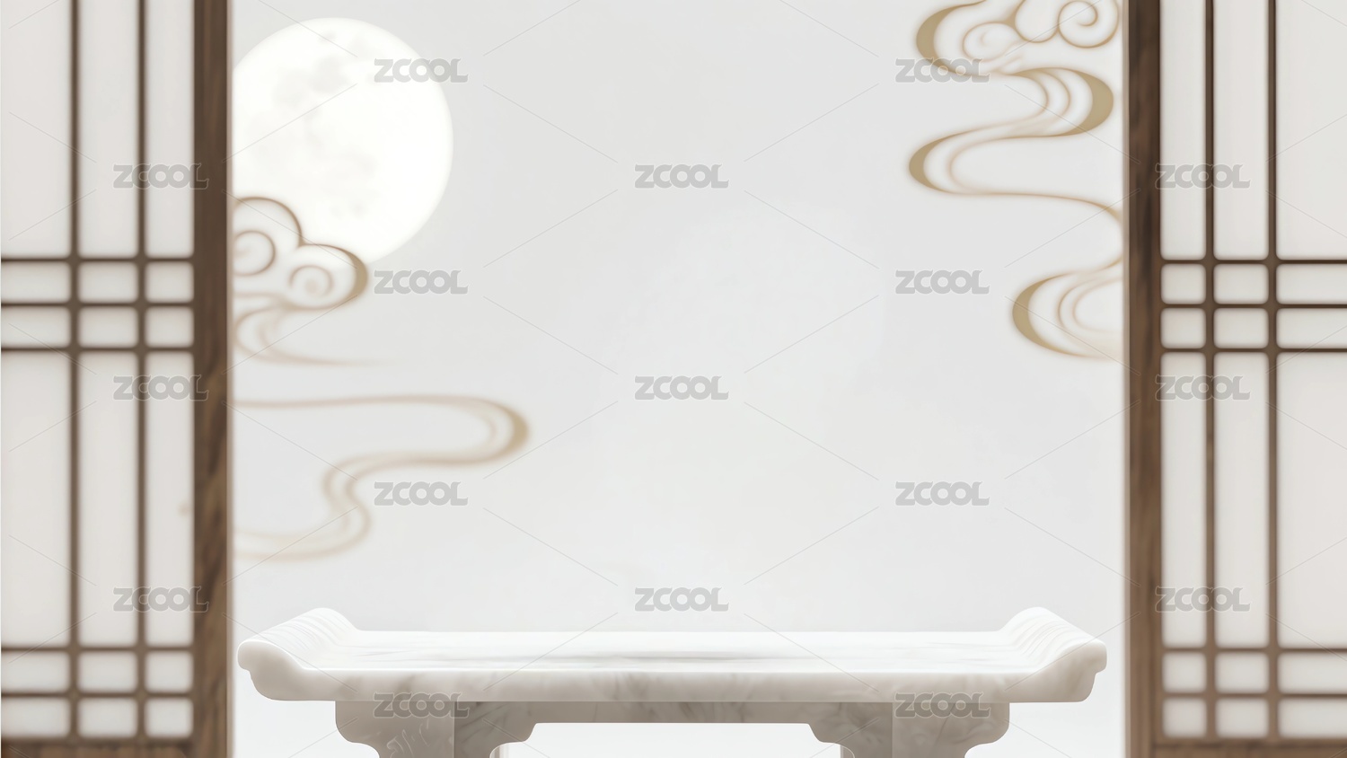 中秋中式大理石桌云纹背景设计节日营销海报