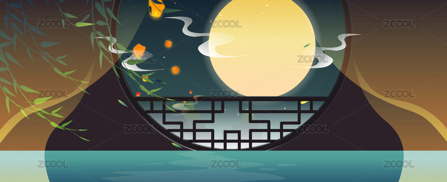 中国传统节日元宵中秋节矢量海报