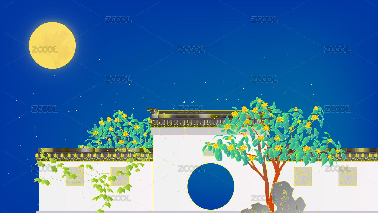 中秋月圆桂花飘香的中国风插图