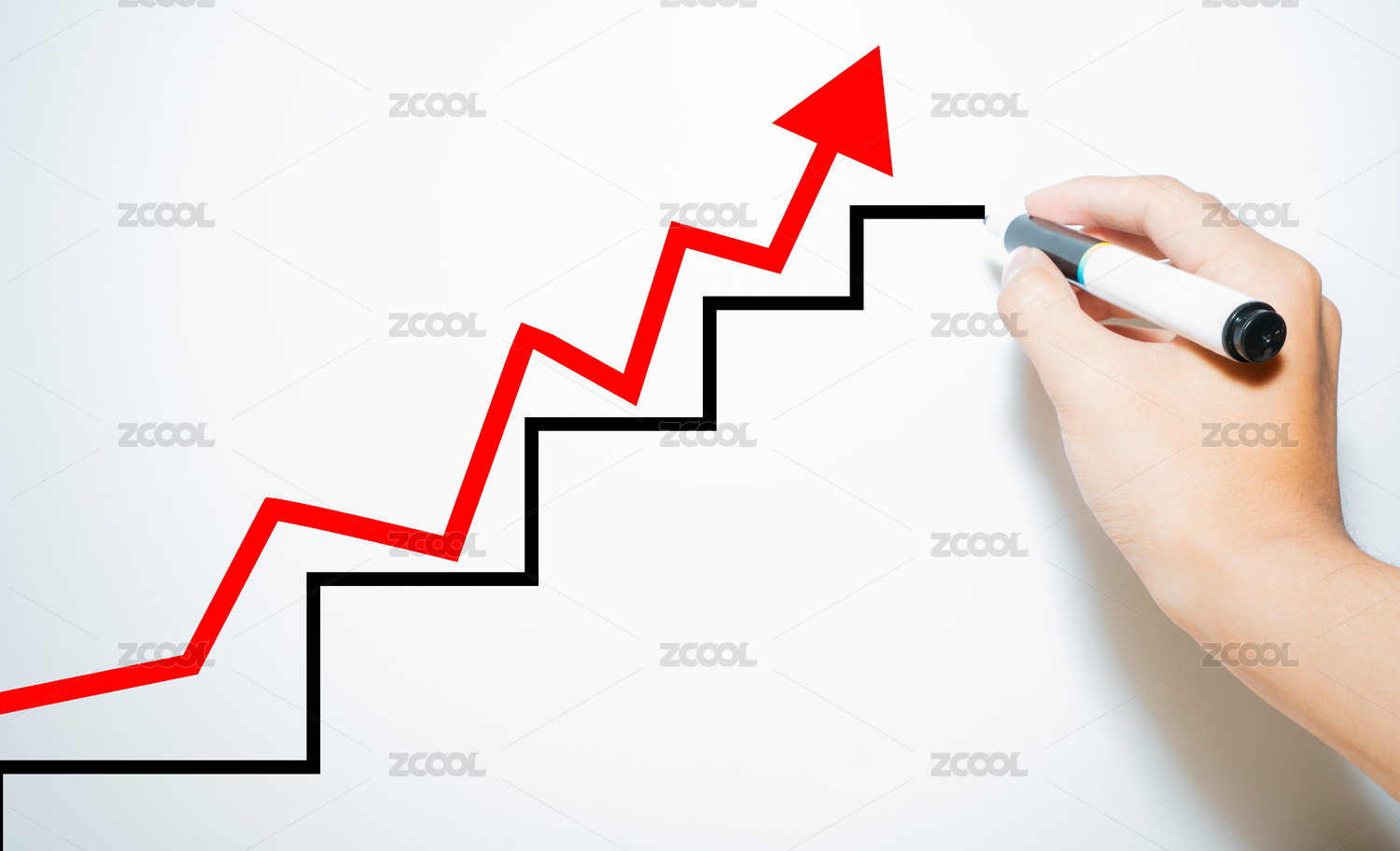 手拿着油笔在白板上分析解析股市股票涨停走势趋势上涨上升的箭头A股股市投资概念
