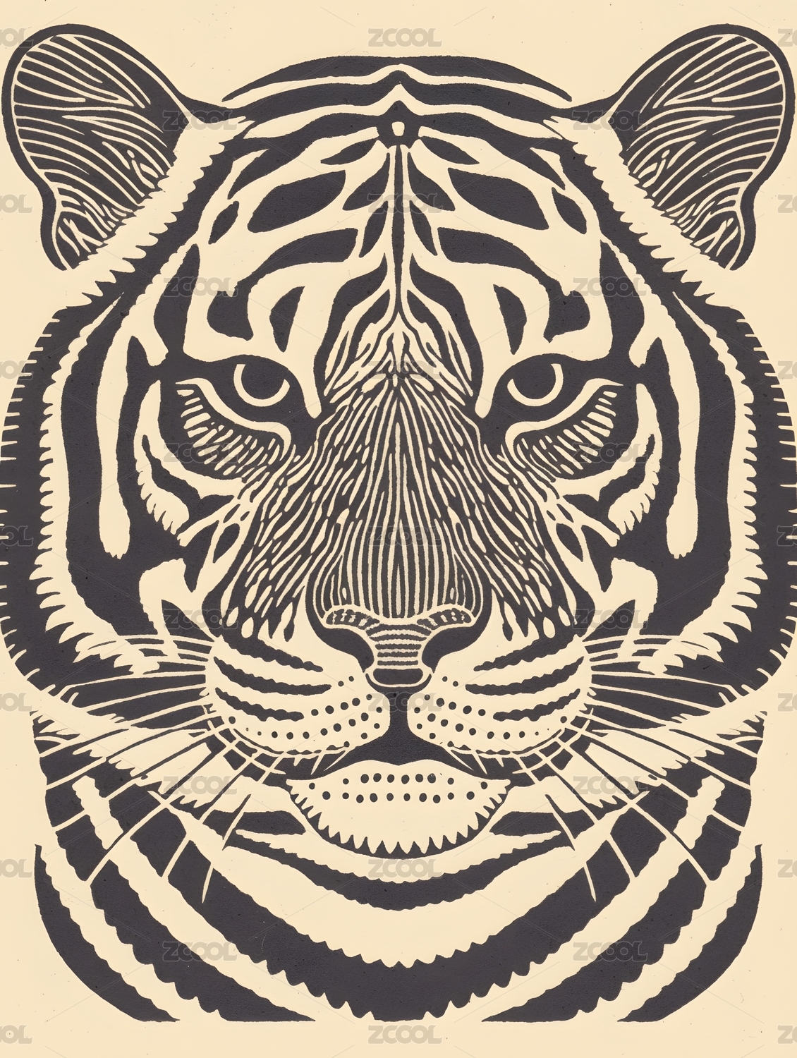 老虎黑白版画