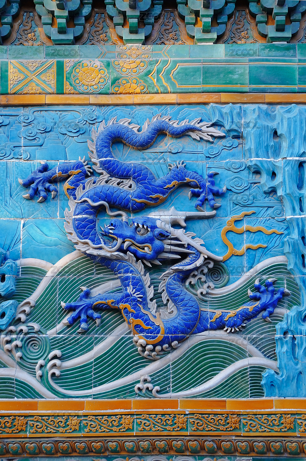 北京市北海公园清代建筑九龙壁上的龙形雕像
