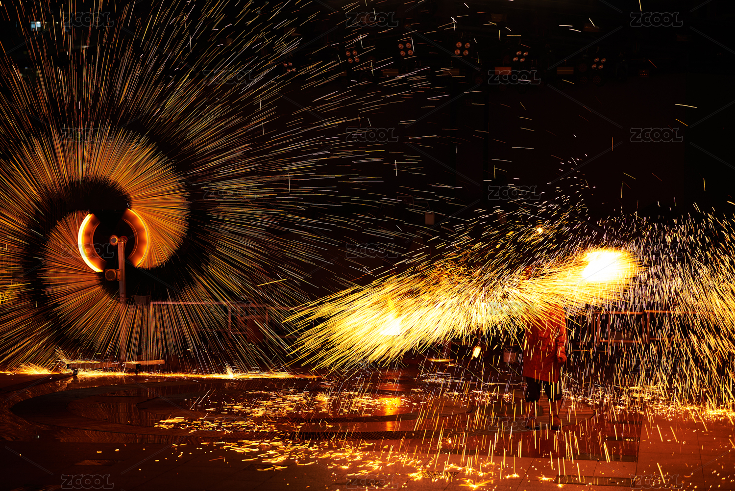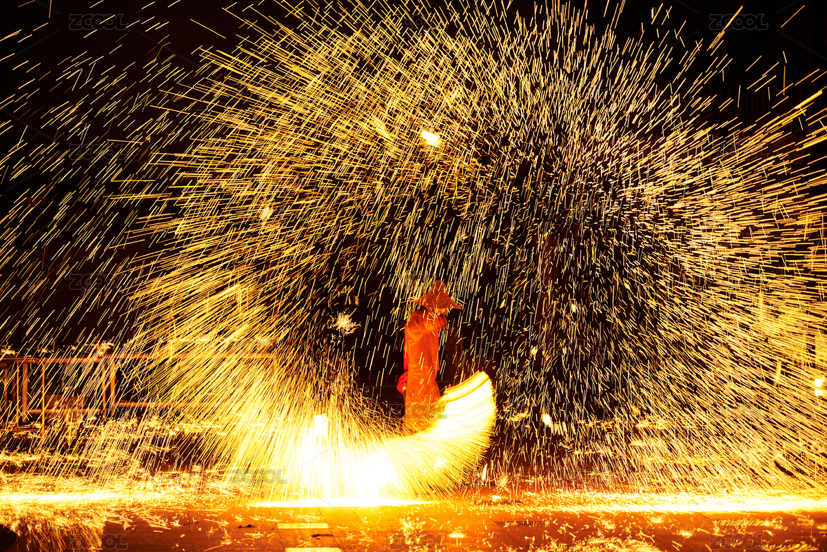 表演,传统,打铁花,反射,非物质文化遗产,非遗表演,火花,旅游目的地,民间,民间艺术