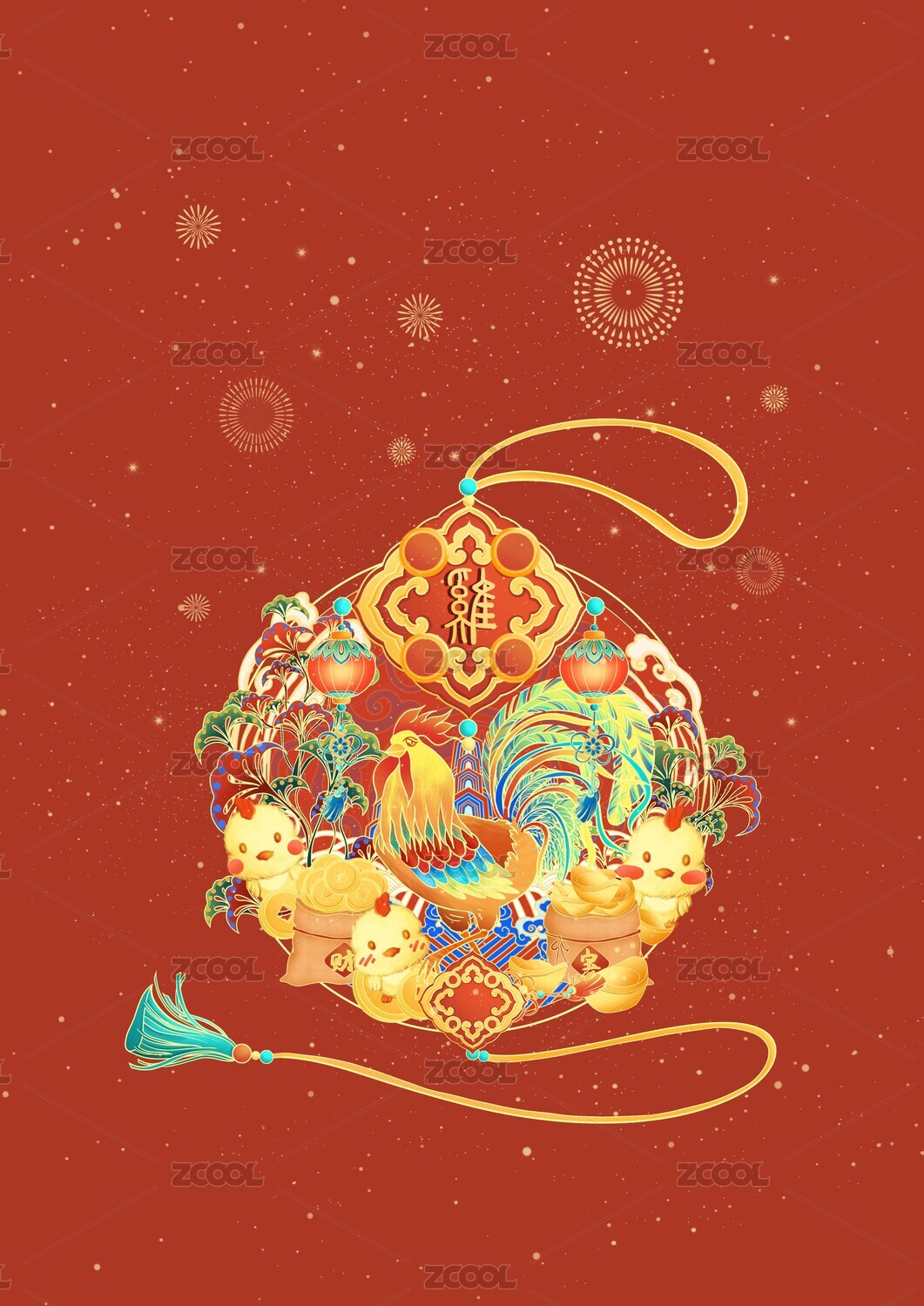 十二生肖国风封面插画酉鸡