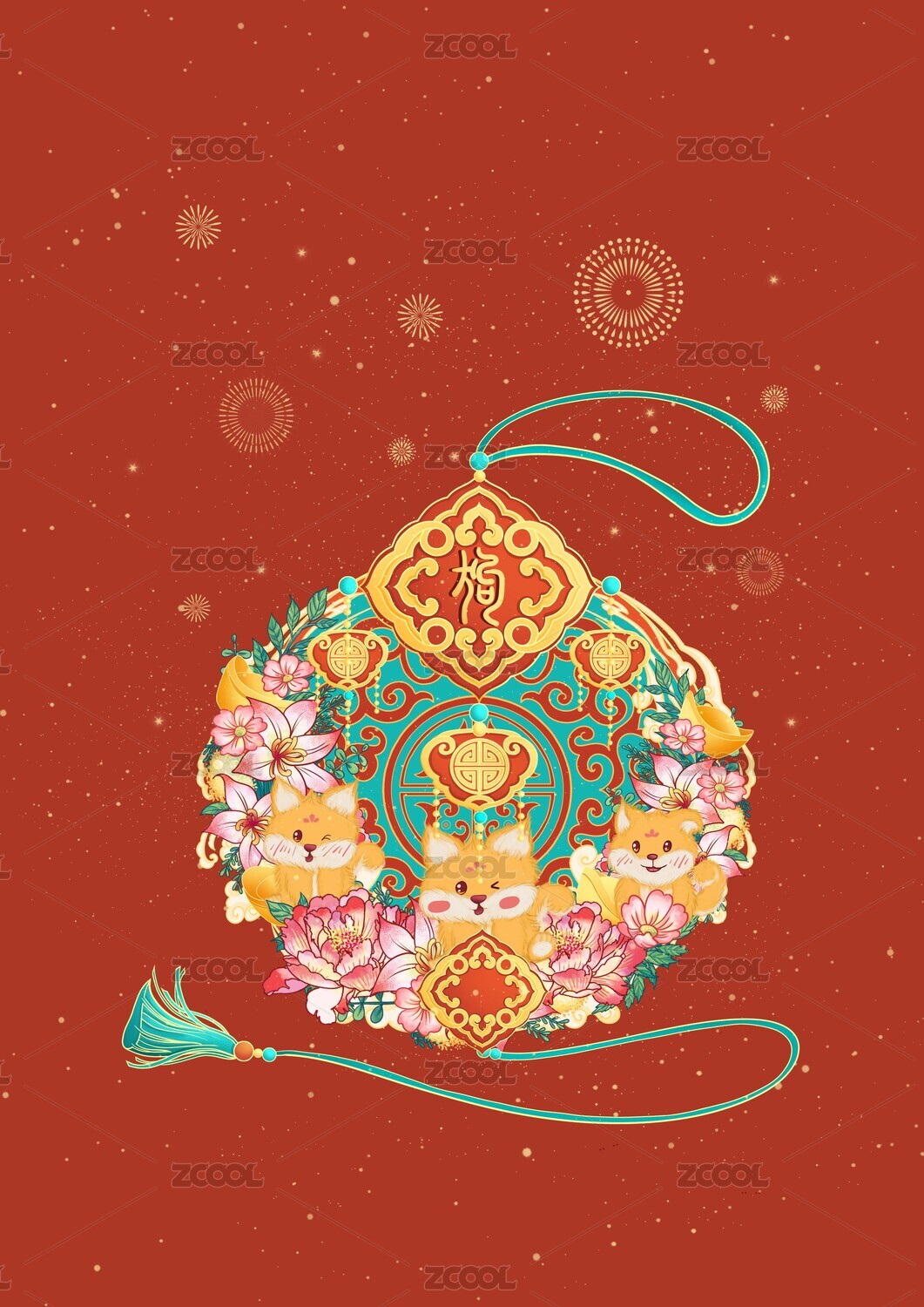 国潮龙年新年春节福袋元素