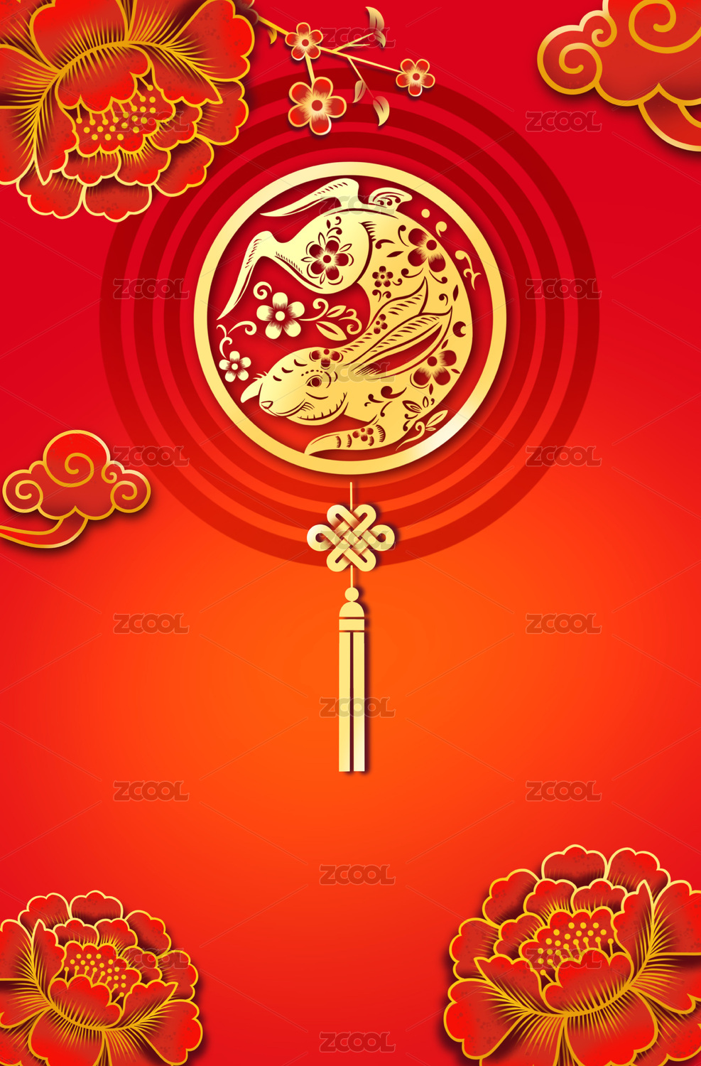 新年剪纸兔子背景