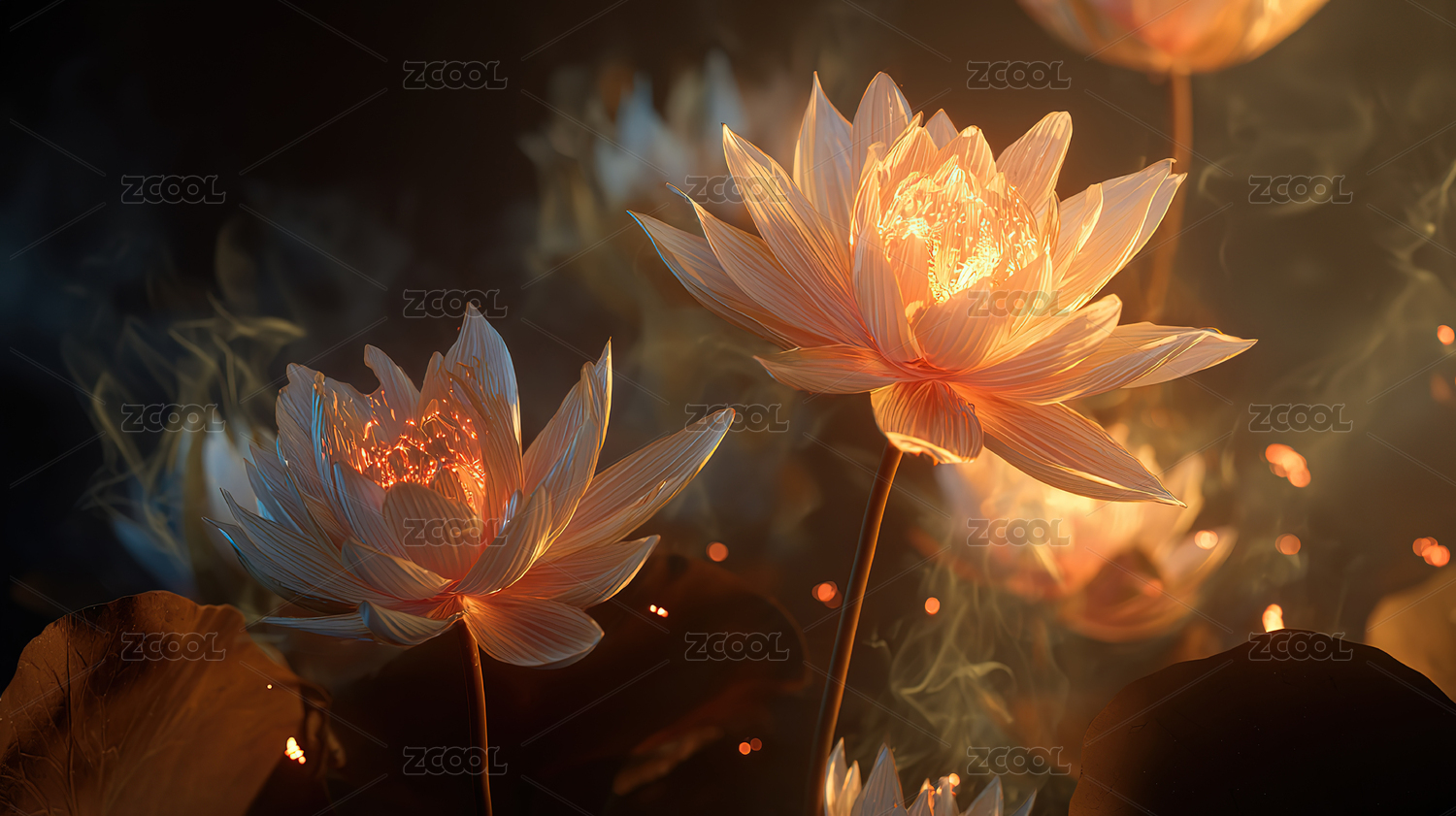 发光,莲花,植物,抽象,美丽,花卉,蓝色,颜色,自然,开花