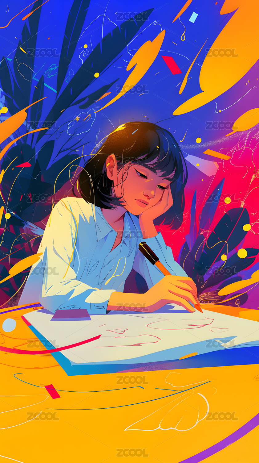 阅读,书籍,女孩,梦幻,紫色,星光,插画