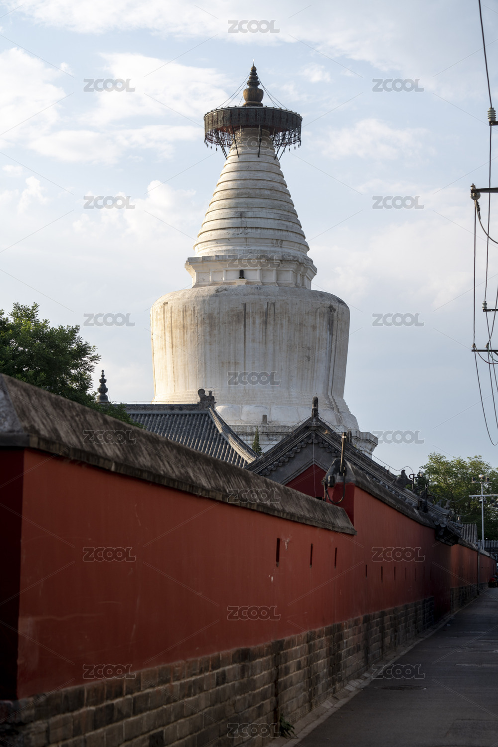 北京妙应白塔寺庙红墙古建筑历史文化胡同街