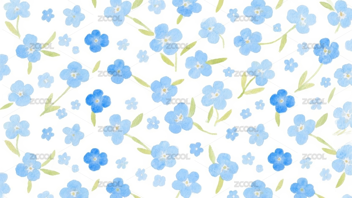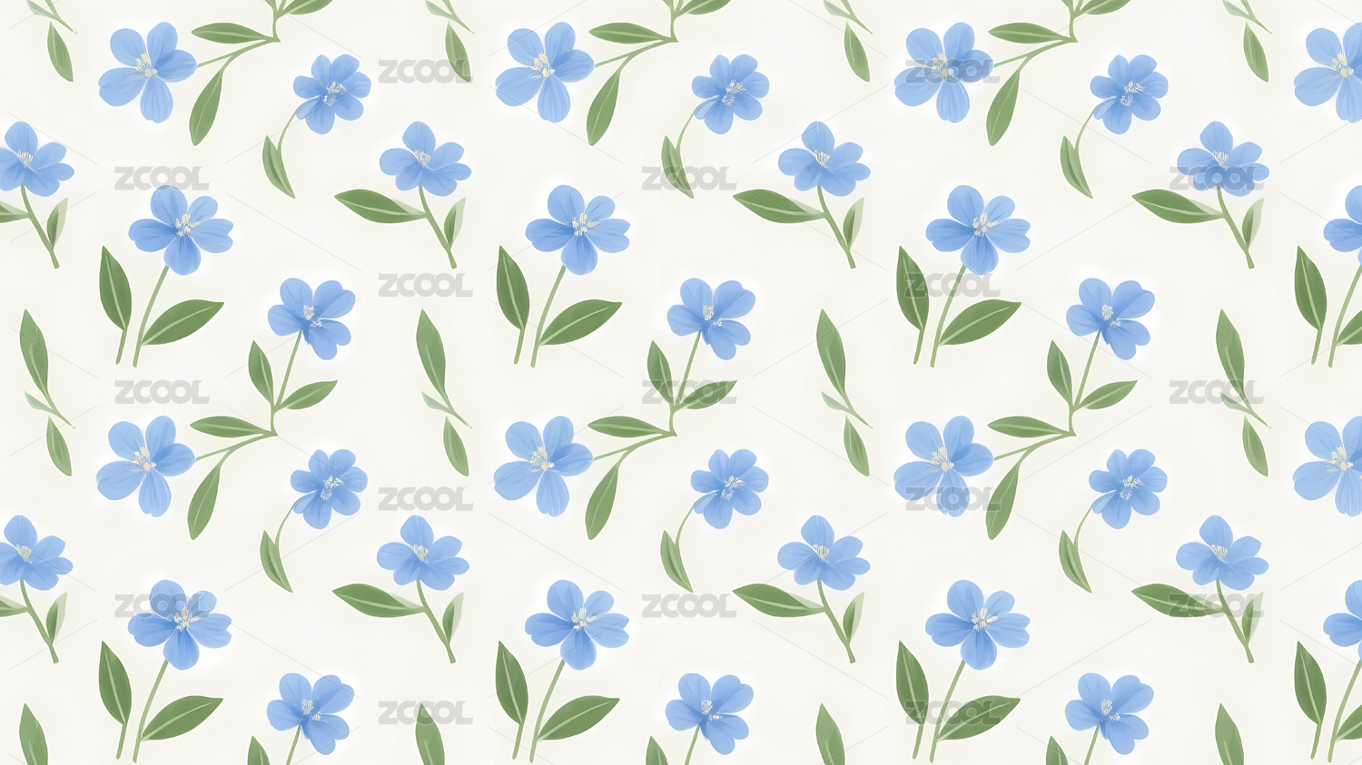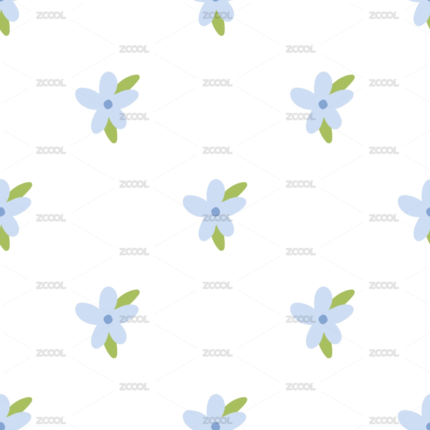 蓝色清新花朵连续无缝四方连续图
