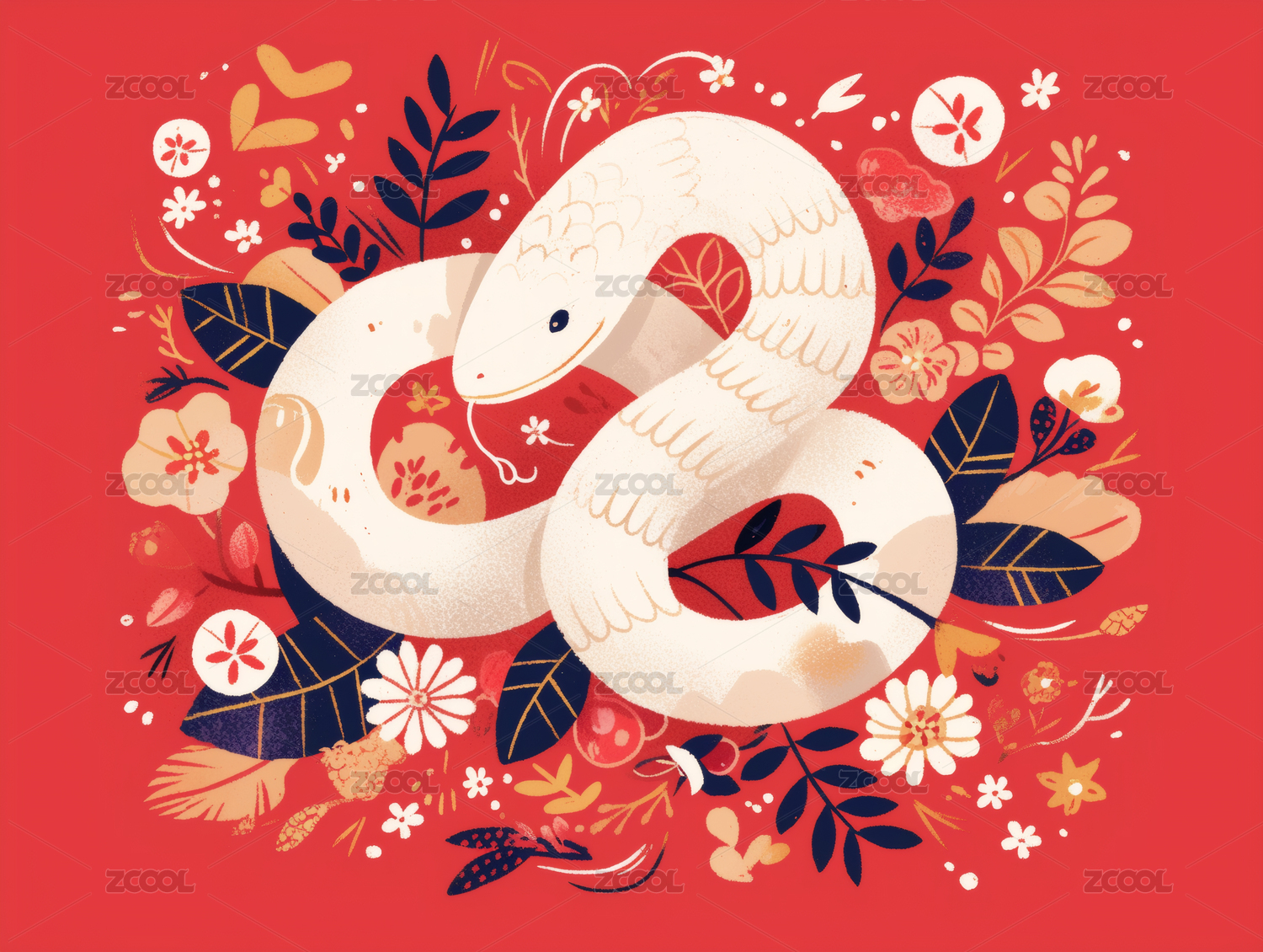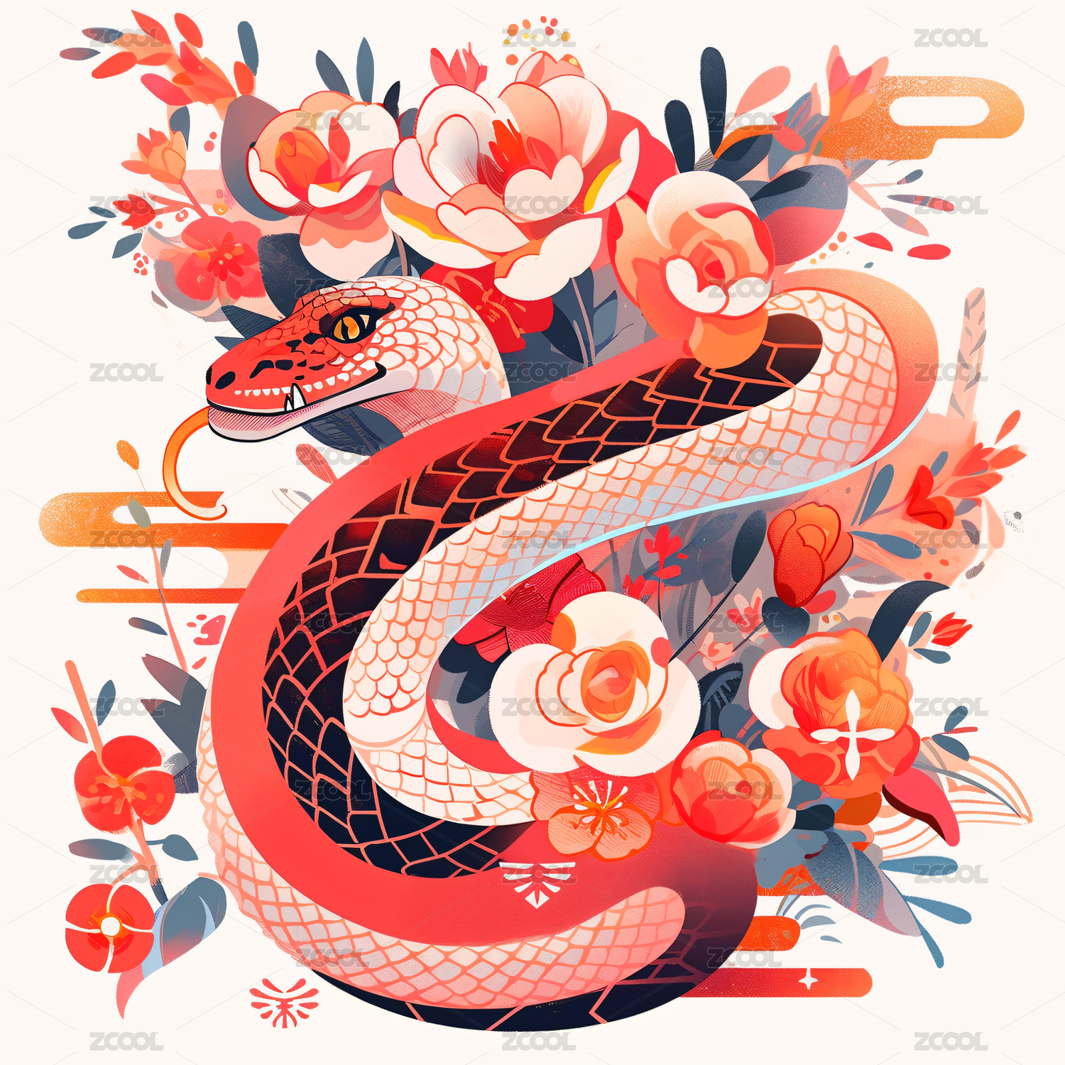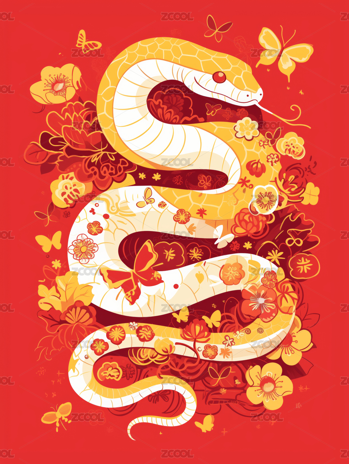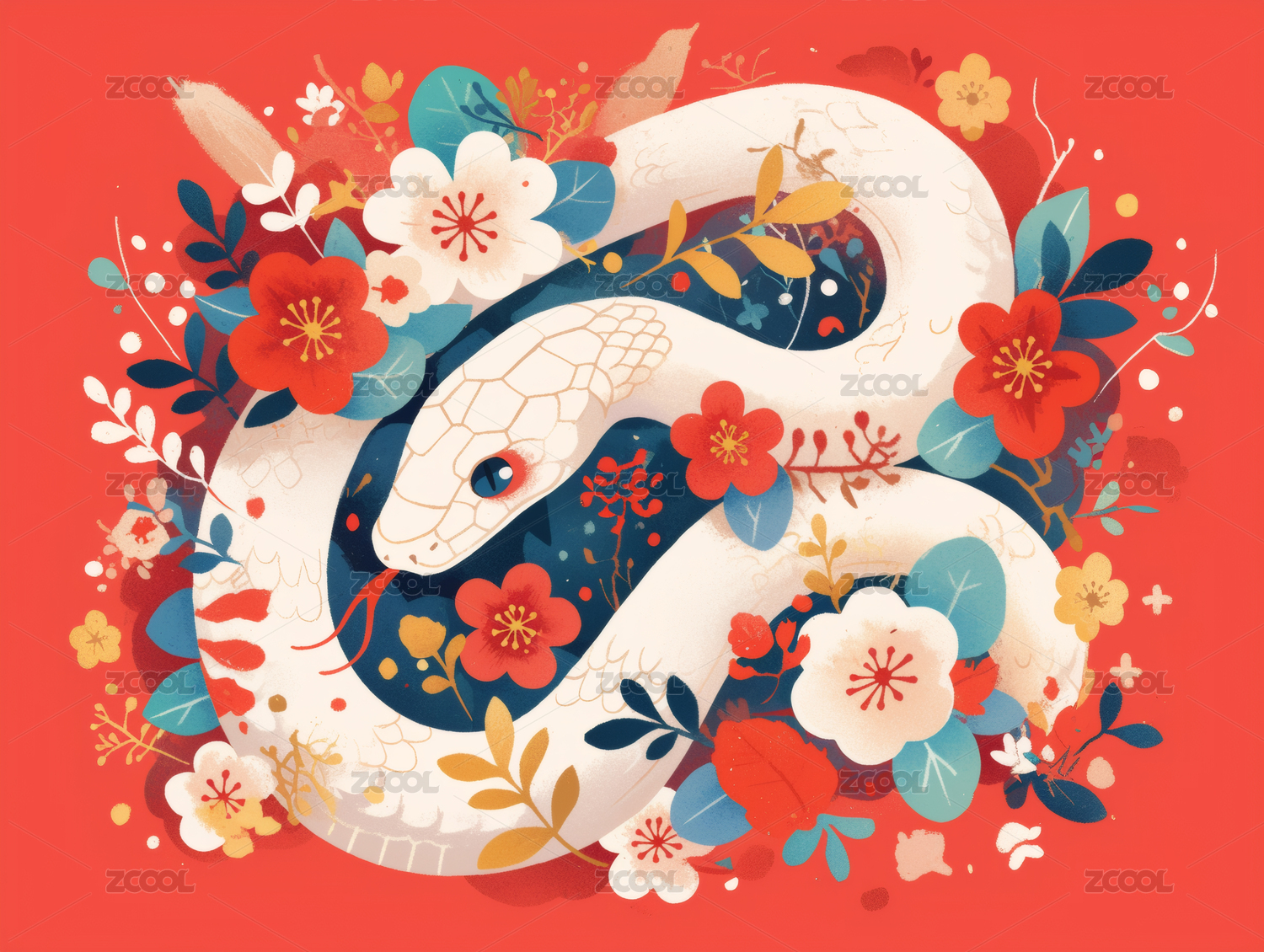 花纹,蛇年,蛇,传统元素,艺术,蛇元素,生肖,生肖蛇,蛇和花,繁花