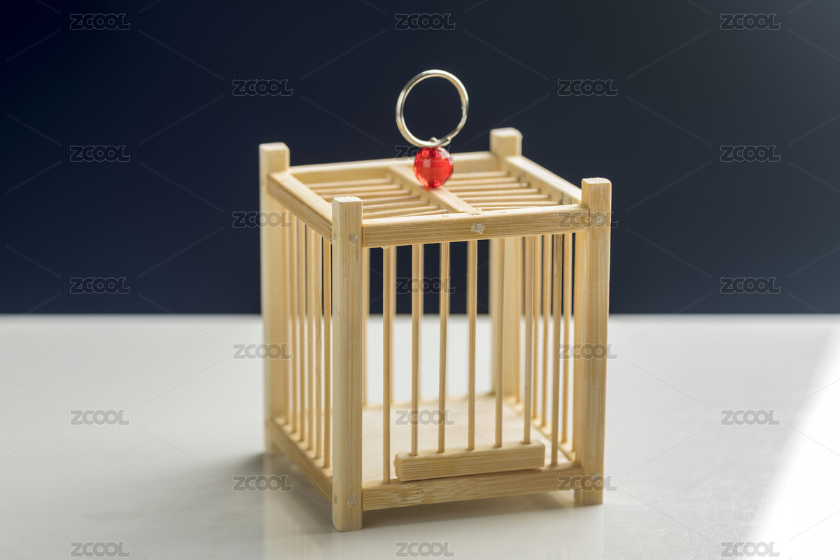 竹制鸣虫虫具蝈蝈笼子摆放在桌面上特写
