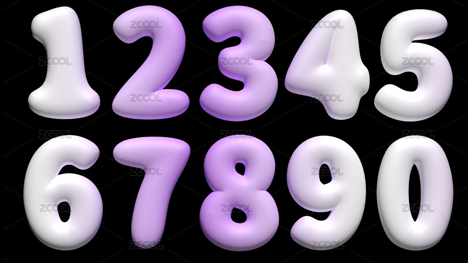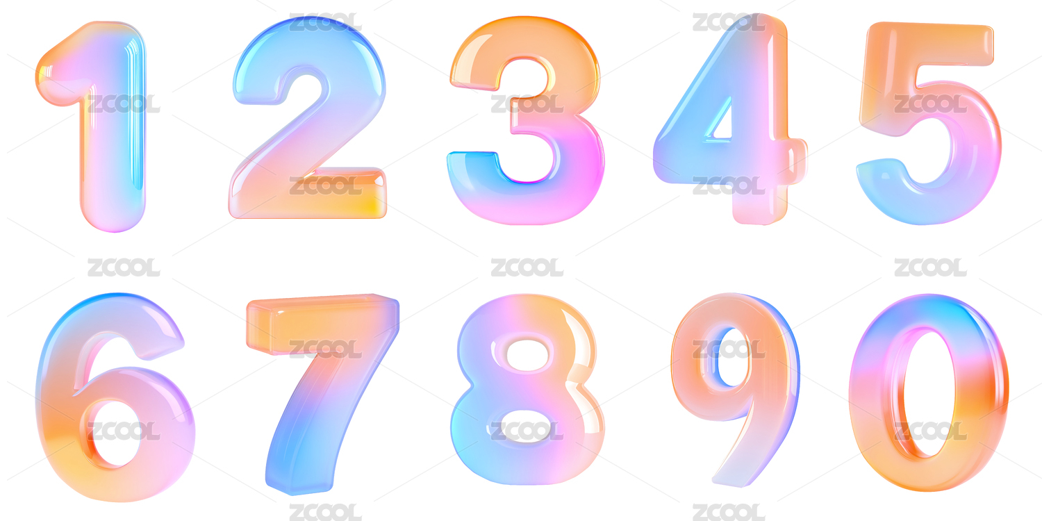 3d糖果色阿拉伯数字0至9彩色三维模型