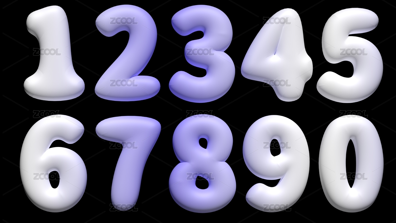 数字0~1立体字字体设计